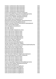 Celtis australis (Südlicher Zürgelbaum) 2022 Celtis australis (Südlicher Zürgelbaum) 2022 Celtis australis (Südlicher Zürgelbaum) 2022 Pyrus calleryana 'Aristocrat' (Zierbirne) 2022 Prunus serrulata 'Kanzan' (Japanische Blütenkirsche) 2022 Fraxinus ornus 'Obelisk' (Säulenblumenesche) 2022 Fraxinus ornus 'Obelisk' (Säulenblumenesche) 2022 Fraxinus ornus 'Obelisk' (Säulenblumenesche) 2022 Malus spec. (Apfelbaum) 2022 Malus 'Evereste' (Zierapfel) 2022 Ulmus 'New Horizon' (Resista Ulme) 2022 Ulmus 'New Horizon' (Resista Ulme) 2022 Ulmus 'New Horizon' (Resista Ulme) 2022 Ulmus 'New Horizon' (Resista Ulme) 2022 Ulmus 'New Horizon' (Resista Ulme) 2022 Ulmus 'New Horizon' (Resista Ulme) 2022 Ulmus 'New Horizon' (Resista Ulme) 2022 Ulmus 'New Horizon' (Resista Ulme) 2022 Ulmus 'New Horizon' (Resista Ulme) 2022 Ulmus 'New Horizon' (Resista Ulme) 2022 Ulmus 'New Horizon' (Resista Ulme) 2022 Ulmus 'New Horizon' (Resista Ulme) 2022 Ulmus 'New Horizon' (Resista Ulme) 2022 Fraxinus angustifolia 'Raywood' (Schmalblättrige Esche) 2022 Tilia spec. (Linde) 2022 Tilia spec. (Linde) 2022 Populus nigra 'Italica' (Pyramidenpappel) 2022 Gymnocladus dioicus (Geweihbaum) 2022 Carpinus betulus 'Columnaris' (Pyramidenhainbuche) 2022 Carpinus betulus 'Columnaris' (Pyramidenhainbuche) 2022 Carpinus betulus 'Columnaris' (Pyramidenhainbuche) 2022 Acer platanoides (Spitzahorn) 2022 Gymnocladus dioicus (Geweihbaum) 2022 Tilia cordata (Winterlinde) 2022 Tilia cordata 'Greenspire' (Stadtlinde) 2022 Acer platanoides 'Columnare' (Säulenahorn) 2022 Fagus sylvatica (Rotbuche) 2022 Acer platanoides 'Eurostar' (Spitzahorn) 2022 Ulmus 'New Horizon' (Resista Ulme) 2022 Aesculus x carnea 'Briotii' (Scharlachkastanie) 2022 Tilia tomentosa 'Brabant' (Silberlinde) 2022 Fraxinus ornus 'Obelisk' (Säulenblumenesche) 2022 Ulmus 'Columella' (Holländische Ulme) 2022 Ulmus 'Columella' (Holländische Ulme) 2022 Ulmus 'Columella' (Holländische Ulme) 2022 Ulmus 'Columella' (Holländische Ulme) 2022 Tilia cordata 'Greenspire' (Stadtlinde) 2022 Fraxinus ornus 'Obelisk' (Säulenblumenesche) 2022 Pyrus calleryana 'Redspire' (Zierbirne) 2022 Fraxinus angustifolia 'Raywood' (Schmalblättrige Esche) 2022 Celtis australis (Südlicher Zürgelbaum) 2022