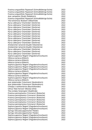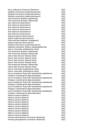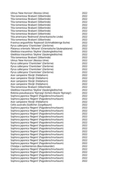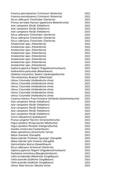 Zelkova serrata 'Green Vase' (Kugelzelkova) 2022 Gleditsia triacanthos (Lederhülsenbaum) 2022 Pinus wallichiana (Tränenkiefer) 2022 Fraxinus ornus 'Obelisk' (Säulenblumenesche) 2022 Zelkova serrata 'Green Vase' (Kugelzelkova) 2022 Pyrus calleryana 'Redspire' (Zierbirne) 2022 Koelreuteria paniculata (Blasenbaum) 2022 Sorbus aucuparia 'Sheerwater Seedling' (Säuleneberesche) 2022 Fraxinus ornus 'Obelisk' (Säulenblumenesche) 2022 Abies cephalonica (Griechische Tanne) 2022 Quercus robur 'Fastigiata Koster' (Säuleneiche) 2022 Sophora japonica 'Columnaris' (Säulen-Schnurbaum) 2022 Liquidambar styraciflua 'Worplesdon' (Worplesdon-Amberbaum) 2022 Acer platanoides (Spitzahorn) 2022 Paulownia tomentosa (Blauglockenbaum) 2022 Prunus avium (Vogelkirsche) 2022 Juglans regia (Walnussbaum) 2022 Prunus spec. (Kirsche) 2022 Prunus spec. (Kirsche) 2022 Malus spec. (Apfelbaum) 2022 Celtis australis (Südlicher Zürgelbaum) 2022 Celtis australis (Südlicher Zürgelbaum) 2022 Fraxinus ornus 'Obelisk' (Säulenblumenesche) 2022 Tilia tomentosa 'Brabant' (Silberlinde) 2022 Acer campestre 'Elsrijk' (Feldahorn) 2022 Ulmus 'Columella' (Holländische Ulme) 2022 Ulmus 'Columella' (Holländische Ulme) 2022 Ulmus 'Columella' (Holländische Ulme) 2022 Ulmus 'Columella' (Holländische Ulme) 2022 Ulmus 'Columella' (Holländische Ulme) 2022 Zelkova serrata 'Green Vase' (Kugelzelkova) 2022 Ulmus 'New Horizon' (Resista Ulme) 2022 Ulmus 'New Horizon' (Resista Ulme) 2022 Ulmus 'New Horizon' (Resista Ulme) 2022 Ulmus 'Columella' (Holländische Ulme) 2022 Fraxinus ornus 'Obelisk' (Säulenblumenesche) 2022 Tilia tomentosa 'Brabant' (Silberlinde) 2022 Tilia tomentosa 'Brabant' (Silberlinde) 2022 Tilia tomentosa 'Brabant' (Silberlinde) 2022 Corylus colurna (Baumhasel) 2022 Fraxinus pennsylvanica 'Cimmaron' (Rotesche) 2022 Koelreuteria paniculata 'Fastigiata' (Säulenblasenbaum) 2022 Fraxinus pennsylvanica 'Cimmaron' (Rotesche) 2022 Fraxinus pennsylvanica 'Cimmaron' (Rotesche) 2022 Fraxinus pennsylvanica 'Cimmaron' (Rotesche) 2022 Fraxinus pennsylvanica 'Cimmaron' (Rotesche) 2022 Fraxinus pennsylvanica 'Cimmaron' (Rotesche) 2022 Fraxinus pennsylvanica 'Cimmaron' (Rotesche) 2022 Tilia tomentosa 'Brabant' (Silberlinde) 2022 Fraxinus angustifolia 'Raywood' (Schmalblättrige Esche) 2022 Fraxinus angustifolia 'Raywood' (Schmalblättrige Esche) 2022