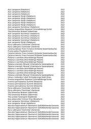 Platanus x acerifolia 'Tremonia' (Schmalkronige Platane) 2022 Platanus x acerifolia 'Tremonia' (Schmalkronige Platane) 2022 Aesculus hippocastanum 'Baumannii' (Gefülltblühende Kastanie) 2022 Tilia tomentosa 'Brabant' (Silberlinde) 2022 Populus nigra 'Italica' (Pyramidenpappel) 2022 Populus nigra 'Italica' (Pyramidenpappel) 2022 Acer campestre 'Elsrijk' (Feldahorn) 2022 Acer campestre 'Korinthosz' (Feldahorn) 2022 Acer campestre 'Elsrijk' (Feldahorn) 2022 Acer campestre 'Elsrijk' (Feldahorn) 2022 Gleditsia triacanthos 'Skyline' (Säulengleditschie) 2022 Gleditsia triacanthos 'Skyline' (Säulengleditschie) 2022 Gleditsia triacanthos 'Skyline' (Säulengleditschie) 2022