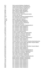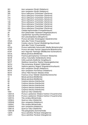 261 Acer campestre 'Elsrijk' (Feldahorn) 265 Acer campestre 'Elsrijk' (Feldahorn) 205 Pyrus calleryana 'Chanticleer' (Zierbirne) 211 Pyrus calleryana 'Chanticleer' (Zierbirne) 216 Pyrus calleryana 'Chanticleer' (Zierbirne) 112 Pyrus calleryana 'Chanticleer' (Zierbirne) 144 Pyrus calleryana 'Chanticleer' (Zierbirne) 150 Pyrus calleryana 'Chanticleer' (Zierbirne) 151 Pyrus calleryana 'Chanticleer' (Zierbirne) 205 Pyrus calleryana 'Chanticleer' (Zierbirne) 120 Catalpa bignonioides (Trompetenbaum) 24 Acer platanoides 'Cleveland' (Kegelspitzahorn) 26 Liquidambar styraciflua (Amberbaum) 77 Acer pseudoplatanus (Bergahorn) 129 Prunus serrulata 'Amanogawa' (Säulenkirsche) 374/A Salix alba 'Tristis' (Trauerweide) 405/A Corylus colurna 'Granat' (Rotblättrige Baumhasel) 452 Salix alba 'Tristis' (Trauerweide) 472/A Prunus subhirtella 'Autumnalis' (Weiße Winterkirsche) 473/E Prunus serrulata 'Kanzan' (Japanische Blütenkirsche) 473/F Acer negundo 'Flamingo' (Weißbunter Eschenahorn) 531/A Betula pendula (Weißbirke) 567/Q Fraxinus pennsylvanica 'Cimmaron' (Rotesche) 567/R Ulmus 'Columella' (Holländische Ulme) 567/S Celtis australis (Südlicher Zürgelbaum) 567/T Gleditsia triacanthos 'Skyline' (Säulengleditschie) 567/U Tilia tomentosa 'Brabant' (Silberlinde) 567/V Sophora japonica 'Regent' (Pagodenschnurbaum) 567/W Acer campestre 'Elsrijk' (Feldahorn) 567/X Acer campestre 'Korinthosz' (Feldahorn) 567/Y Ulmus 'New Horizon' (Resista Ulme) 567/Z Fraxinus ornus 'Obelisk' (Säulenblumenesche) 12 Betula pendula (Weißbirke) 28 Betula pendula (Weißbirke) 44 Carpinus betulus (Hainbuche) 45 Carpinus betulus (Hainbuche) 46 Carpinus betulus (Hainbuche) 50 Carpinus betulus (Hainbuche) 84 Carpinus betulus (Hainbuche) 1054 Quercus robur (Stieleiche) 12031/A Prunus x yedoensis 'Shidare Yoshino' (Trauerkirsche) 12031/B Prunus x yedoensis 'Shidare Yoshino' (Trauerkirsche) 12057/A Tilia cordata (Winterlinde) 12058/A Quercus robur (Stieleiche) 12059/B Acer campestre (Feldahorn) 12059/C Tilia cordata (Winterlinde) 12059/D Acer campestre (Feldahorn) 12061/A Quercus robur (Stieleiche) 12061/B Tilia platyphyllos (Sommerlinde) 12070 Pyrus salicifolia 'Pendula' (Hängebirne) 12071 Pyrus salicifolia 'Pendula' (Hängebirne)
