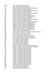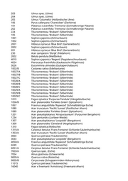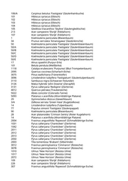 232 Platanus spec. (Platane) 233 Platanus spec. (Platane) 234 Platanus spec. (Platane) 235 Platanus spec. (Platane) 249 Acer campestre 'Elsrijk' (Feldahorn) 301 Platanus spec. (Platane) 302 Platanus spec. (Platane) 303 Platanus spec. (Platane) 304 Platanus spec. (Platane) 305 Platanus spec. (Platane) 306 Platanus spec. (Platane) 307 Platanus spec. (Platane) 308 Platanus spec. (Platane) 309 Platanus spec. (Platane) 253 Acer campestre 'Elsrijk' (Feldahorn) 269 Acer campestre 'Elsrijk' (Feldahorn) 101 Hibiscus syriacus (Eibisch) 102 Hibiscus syriacus (Eibisch) 103 Hibiscus syriacus (Eibisch) 104 Pyrus calleryana 'Chanticleer' (Zierbirne) 105 Hibiscus syriacus (Eibisch) 106 Hibiscus syriacus (Eibisch) 107 Hibiscus syriacus (Eibisch) 108 Pyrus calleryana 'Chanticleer' (Zierbirne) 109 Pyrus calleryana 'Chanticleer' (Zierbirne) 110 Pyrus calleryana 'Chanticleer' (Zierbirne) 111 Pyrus calleryana 'Chanticleer' (Zierbirne) 201 Hibiscus syriacus (Eibisch) 202 Hibiscus syriacus (Eibisch) 203 Hibiscus syriacus (Eibisch) 204 Hibiscus syriacus (Eibisch) 205 Hibiscus syriacus (Eibisch) 105 Platanus x acerifolia 'Tremonia' (Schmalkronige Platane) 130 Platanus x acerifolia 'Tremonia' (Schmalkronige Platane) 113 Tilia tomentosa 'Brabant' (Silberlinde) 218 Tilia tomentosa 'Brabant' (Silberlinde) 224 Tilia tomentosa 'Brabant' (Silberlinde) 229 Tilia tomentosa 'Brabant' (Silberlinde) 1080 Fraxinus angustifolia 'Raywood' (Schmalblättrige Esche) 2119 Fraxinus angustifolia 'Raywood' (Schmalblättrige Esche) 211 Fraxinus angustifolia 'Raywood' (Schmalblättrige Esche) 2101 Carpinus betulus (Hainbuche) 2202 Pinus nigra nigra (Österreichische Schwarzkiefer) 103 Tilia tomentosa 'Brabant' (Silberlinde) 201 Hibiscus syriacus 'White Chiffon' (Garteneibisch) 202 Hibiscus syriacus 'White Chiffon' (Garteneibisch) 1021 Carpinus betulus 'Frans Fontaine' (Schlanke Säulenhainbuche) 101/A Ulmus spec. (Ulme) 101/B Ulmus spec. (Ulme) 201 Ulmus spec. (Ulme) 202 Ulmus spec. (Ulme)