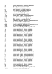 316 Fraxinus pennsylvanica 'Cimmaron' (Rotesche) 102 Ulmus 'New Horizon' (Resista Ulme) 141 Ulmus 'Columella' (Holländische Ulme) 203 Pyrus calleryana 'Chanticleer' (Zierbirne) 209 Pyrus calleryana 'Chanticleer' (Zierbirne) 2005 Acer campestre 'Elsrijk' (Feldahorn) 3008 Celtis australis (Südlicher Zürgelbaum) 153 Acer campestre 'Elsrijk' (Feldahorn) 2026 Fraxinus ornus 'Obelisk' (Säulenblumenesche) 2029 Pyrus calleryana 'Chanticleer' (Zierbirne) 2047 Pyrus calleryana 'Chanticleer' (Zierbirne) 214 Pyrus calleryana 'Aristocrat' (Zierbirne) 303 Koelreuteria paniculata 'Fastigiata' (Säulenblasenbaum) 1002 Tilia tomentosa 'Brabant' (Silberlinde) 1009 Tilia tomentosa 'Brabant' (Silberlinde) 2025 Fraxinus angustifolia 'Raywood' (Schmalblättrige Esche) 2055 Tilia tomentosa 'Brabant' (Silberlinde) 1037/I Gleditsia triacanthos 'Skyline' (Säulengleditschie) 101 Fraxinus pennsylvanica 'Summit' (Rotesche) 102 Fraxinus pennsylvanica 'Summit' (Rotesche) 103 Fraxinus pennsylvanica 'Summit' (Rotesche) 104 Fraxinus pennsylvanica 'Summit' (Rotesche) 105 Amelanchier laevis 'Snowflakes' (Felsenbirne) 106 Fraxinus pennsylvanica 'Summit' (Rotesche) 107 Fraxinus pennsylvanica 'Summit' (Rotesche) 108 Fraxinus pennsylvanica 'Summit' (Rotesche) 109 Fraxinus pennsylvanica 'Summit' (Rotesche) 110 Fraxinus pennsylvanica 'Summit' (Rotesche) 111 Fraxinus pennsylvanica 'Summit' (Rotesche) 112 Amelanchier laevis 'Snowflakes' (Felsenbirne) 113 Amelanchier laevis 'Snowflakes' (Felsenbirne) 114 Fraxinus pennsylvanica 'Summit' (Rotesche) 115 Fraxinus pennsylvanica 'Summit' (Rotesche) 116 Fraxinus pennsylvanica 'Summit' (Rotesche) 117 Fraxinus pennsylvanica 'Summit' (Rotesche) 118 Fraxinus pennsylvanica 'Summit' (Rotesche) 119 Fraxinus pennsylvanica 'Summit' (Rotesche) 210 Fraxinus ornus 'Obelisk' (Säulenblumenesche) 211 Fraxinus ornus 'Obelisk' (Säulenblumenesche) 212 Fraxinus ornus 'Obelisk' (Säulenblumenesche) 213 Fraxinus ornus 'Obelisk' (Säulenblumenesche) 214 Fraxinus ornus 'Obelisk' (Säulenblumenesche) 215 Amelanchier laevis 'Snowflakes' (Felsenbirne) 216 Fraxinus pennsylvanica 'Summit' (Rotesche) 217 Fraxinus pennsylvanica 'Summit' (Rotesche) 218 Fraxinus pennsylvanica 'Summit' (Rotesche) 219 Fraxinus pennsylvanica 'Summit' (Rotesche) 220 Fraxinus pennsylvanica 'Summit' (Rotesche) 108 Acer campestre 'Elsrijk' (Feldahorn) 103 Gleditsia triacanthos 'Skyline' (Säulengleditschie) 1001/A Ulmus 'New Horizon' (Resista Ulme)
