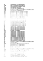 205 Tilia tomentosa 'Brabant' (Silberlinde) 211/B Celtis australis (Südlicher Zürgelbaum) 103 Ulmus 'Columella' (Holländische Ulme) 112/C Acer campestre (Feldahorn) 112/D Acer campestre 'Elsrijk' (Feldahorn) 112/E Carpinus betulus 'Frans Fontaine' (Schlanke Säulenhainbuche) 112/F Acer campestre 'Elsrijk' (Feldahorn) 1002 Fraxinus ornus 'Obelisk' (Säulenblumenesche) 1033 Fraxinus ornus 'Obelisk' (Säulenblumenesche) 2003 Fraxinus ornus 'Obelisk' (Säulenblumenesche) 2011 Fraxinus ornus 'Obelisk' (Säulenblumenesche) 2040 Fraxinus ornus 'Obelisk' (Säulenblumenesche) 2138 Tilia tomentosa 'Brabant' (Silberlinde) 2144 Tilia tomentosa 'Brabant' (Silberlinde) 2168/A Pyrus calleryana 'Chanticleer' (Zierbirne) 2196 Pyrus calleryana 'Chanticleer' (Zierbirne) 229 Pyrus calleryana 'Chanticleer' (Zierbirne) 247 Celtis australis (Südlicher Zürgelbaum) 206 Pyrus calleryana 'Chanticleer' (Zierbirne) 226 Pyrus calleryana 'Chanticleer' (Zierbirne) 229 Pyrus calleryana 'Chanticleer' (Zierbirne) 128 Tilia tomentosa 'Brabant' (Silberlinde) 107 Koelreuteria paniculata (Blasenbaum) 201 Koelreuteria paniculata (Blasenbaum) 206 Koelreuteria paniculata (Blasenbaum) 1034 Jungbaum wird gepflanzt 1108 Tilia tomentosa 'Brabant' (Silberlinde) 1109 Tilia tomentosa 'Brabant' (Silberlinde) 2041 Tilia tomentosa 'Brabant' (Silberlinde) 2057 Tilia tomentosa 'Brabant' (Silberlinde) 2077 Tilia tomentosa 'Brabant' (Silberlinde) 2078 Tilia tomentosa 'Brabant' (Silberlinde) 126 Celtis australis (Südlicher Zürgelbaum) 127 Celtis australis (Südlicher Zürgelbaum) 132 Celtis australis (Südlicher Zürgelbaum) 213 Ulmus 'Columella' (Holländische Ulme) 33/A Carpinus betulus 'Frans Fontaine' (Schlanke Säulenhainbuche) 205 Acer spec. (Ahorn) 100/C Sophora japonica 'Regent' (Pagodenschnurbaum) 117 Tilia tomentosa 'Brabant' (Silberlinde) 118 Tilia tomentosa 'Brabant' (Silberlinde) 202 Jungbaum wird gepflanzt 212 Jungbaum wird gepflanzt 211 Carpinus betulus 'Frans Fontaine' (Schlanke Säulenhainbuche) 100/B Gleditsia triacanthos 'Skyline' (Säulengleditschie) 1028 Aesculus x carnea (Rotblühende Kastanie) 3029 Ulmus 'New Horizon' (Resista Ulme) 4005 Aesculus hippocastanum (Rosskastanie) 16 Acer campestre 'Elsrijk' (Feldahorn) 51 Pyrus calleryana 'Redspire' (Zierbirne) 2018 Platanus x acerifolia (Ahornblättrige Platane)