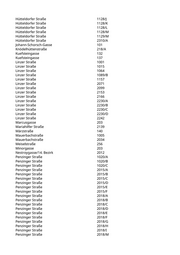 Hütteldorfer Straße 2002 Hütteldorfer Straße 2003 Hütteldorfer Straße 2003/A Hütteldorfer Straße 2003/B Hütteldorfer Straße 2003/C Hütteldorfer Straße 2003/D Hütteldorfer Straße 2003/E Hütteldorfer Straße 2003/F Hütteldorfer Straße 2003/G Hütteldorfer Straße 2003/H Hütteldorfer Straße 2003/I Hütteldorfer Straße 2003/J Hütteldorfer Straße 2003/K Hütteldorfer Straße 2003/L Hütteldorfer Straße 2003/M Hütteldorfer Straße 2003/N Hütteldorfer Straße 2014/A Hütteldorfer Straße 2020 Hütteldorfer Straße 2034/A Hütteldorfer Straße 2041/A Hütteldorfer Straße 2047 Hütteldorfer Straße 2093 Hütteldorfer Straße 3008 Hütteldorfer Straße 3009 Hütteldorfer Straße 3010 Hütteldorfer Straße 3011 Hütteldorfer Straße 3012 Johnstraße 201 Johnstraße 204 Johnstraße 220 Linzer Straße 2004 Linzer Straße 2025 Linzer Straße 2030 Linzer Straße 2056 Linzer Straße 2066 Mariahilfer Gürtel 135 Mariahilfer Straße 1088/A Mariahilfer Straße 1088/B Mariahilfer Straße 1088/C Mariahilfer Straße 1088/D Mariahilfer Straße 1088/E Mariahilfer Straße 1088/F Mariahilfer Straße 1088/G Mariahilfer Straße 2106/A Markgraf-Rüdiger-Straße 121 Markgraf-Rüdiger-Straße 224 Märzstraße 120 Meiselstraße 210 Oeverseestraße 209 Pilgerimgasse 202 Possingergasse 102