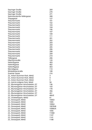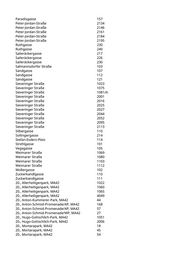 Seyringer Straße 269 Seyringer Straße 270 Seyringer Straße 271 Stammersdorfer Kellergasse 308 Thayagasse 127 Theumermarkt 101 Theumermarkt 102 Theumermarkt 103 Theumermarkt 104 Theumermarkt 106 Theumermarkt 107 Theumermarkt 109 Theumermarkt 111 Theumermarkt 201 Theumermarkt 202 Theumermarkt 203 Theumermarkt 204 Theumermarkt 205 Theumermarkt 206 Theumermarkt 208 Theumermarkt 209 Theumermarkt 210 Töllergasse 206 Überfuhrstraße 120 Viehtriftgasse 303 Viehtriftgasse 402 Viehtriftgasse 403 Werndlgasse 110 Winkeläckerstraße 108 Znaimer Gasse 216 22., Anton-Stummer-Park, MA42 3 22., Anton-Stummer-Park, MA42 4 22., Anton-Stummer-Park, MA42 5 22., Astrid-Lindgren-Park, MA42 94 22., Blumengärten Hirschstetten, D7 136 22., Blumengärten Hirschstetten, D7 143 22., Blumengärten Hirschstetten, D7 178 22., Blumengärten Hirschstetten, D7 356 22., Blumengärten Hirschstetten, D7 451 22., Blumengärten Hirschstetten, D7 466/E 22., Cholewkapark, MA42 61 22., Donaupark, MA42 10003 22., Donaupark, MA42 1005 22., Donaupark, MA42 10064 22., Donaupark, MA42 10078/B 22., Donaupark, MA42 10086/A 22., Donaupark, MA42 1056 22., Donaupark, MA42 11068 22., Donaupark, MA42 1107 22., Donaupark, MA42 1141 22., Donaupark, MA42 1188