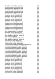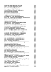 Pyrus calleryana 'Chanticleer' (Zierbirne) 2024 Ulmus 'Columella' (Holländische Ulme) 2024 Ulmus 'New Horizon' (Resista Ulme) 2024 Acer campestre 'Elsrijk' (Feldahorn) 2024 Celtis occidentalis (Westlicher Zürgelbaum) 2024 Populus tremula (Zitterpappel) 2024 Populus tremula (Zitterpappel) 2024 Tsuga canadensis (Hemlockstanne) 2024 Tsuga canadensis (Hemlockstanne) 2024 Zelkova serrata 'Green Vase' (Kugelzelkova) 2024 Morus alba 'Fruitless' (Fruchloser Weißer Maulbeerbaum) 2024 Abies nordmanniana (Nordmannstanne) 2024 Castanea sativa (Edelkastanie) 2024 Fagus sylvatica (Rotbuche) 2024 Corylus colurna 'Granat' (Rotblättrige Baumhasel) 2024 Acer campestre 'Elsrijk' (Feldahorn) 2024 Corylus colurna 'Granat' (Rotblättrige Baumhasel) 2024 Corylus colurna 'Granat' (Rotblättrige Baumhasel) 2024 Pyrus calleryana 'Redspire' (Zierbirne) 2024 Quercus robur 'Filicifolia' (Stieleiche 'Filicifolia') 2024 Platanus x acerifolia 'Alphens Globe' (Kugelplatane) 2024 Platanus x acerifolia 'Alphens Globe' (Kugelplatane) 2024 Pinus nigra nigra (Österreichische Schwarzkiefer) 2024 Pinus nigra nigra (Österreichische Schwarzkiefer) 2024 Zelkova serrata 'Green Vase' (Kugelzelkova) 2024 Ulmus 'New Horizon' (Resista Ulme) 2024 Acer monspessulanum (Französischer Ahorn) 2024 Acer monspessulanum (Französischer Ahorn) 2024 Acer monspessulanum (Französischer Ahorn) 2024 Ostrya carpinifolia (Hopfenbuche) 2024 Platanus x acerifolia 'Tremonia' (Schmalkronige Platane) 2024 Salix alba 'Tristis' (Trauerweide) 2024 Liquidambar styraciflua (Amberbaum) 2024 Fraxinus pennsylvanica 'Cimmaron' (Rotesche) 2024 Platanus x acerifolia 'Tremonia' (Schmalkronige Platane) 2024 Ulmus 'Columella' (Holländische Ulme) 2024 Corylus colurna (Baumhasel) 2024 Acer tataricum (Feuerahorn) 2024 Acer monspessulanum (Französischer Ahorn) 2024 Platanus x acerifolia 'Tremonia' (Schmalkronige Platane) 2024 Juglans nigra (Schwarznussbaum) 2024 Platanus x acerifolia 'Tremonia' (Schmalkronige Platane) 2024 Celtis occidentalis (Westlicher Zürgelbaum) 2024 Fraxinus ornus (Blumenesche) 2024 Acer platanoides 'Schwedleri' (Rotblättriger Spitzahorn) 2024 Acer campestre 'Elsrijk' (Feldahorn) 2024 Sorbus domestica (Speierling) 2024 Acer campestre 'Elsrijk' (Feldahorn) 2024 Alnus spaethii (Purpur-Erle) 2024 Koelreuteria paniculata 'Fastigiata' (Säulenblasenbaum) 2024 Juglans nigra (Schwarznussbaum) 2024