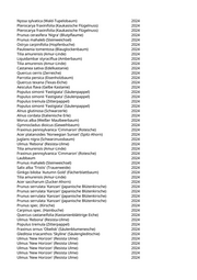 Crataegus laevigata 'Pauls Scarlet' (Rotdorn) 2024 Crataegus laevigata 'Pauls Scarlet' (Rotdorn) 2024 Acer campestre 'Elsrijk' (Feldahorn) 2024 Aesculus hippocastanum 'Baumannii' (Gefülltblühende Kastanie) 2024 Aesculus hippocastanum 'Baumannii' (Gefülltblühende Kastanie) 2024 Aesculus hippocastanum 'Baumannii' (Gefülltblühende Kastanie) 2024 Aesculus hippocastanum 'Baumannii' (Gefülltblühende Kastanie) 2024 Aesculus hippocastanum 'Baumannii' (Gefülltblühende Kastanie) 2024 Aesculus hippocastanum 'Baumannii' (Gefülltblühende Kastanie) 2024 Tilia tomentosa 'Brabant' (Silberlinde) 2024 Tilia tomentosa 'Brabant' (Silberlinde) 2024 Acer campestre 'Elsrijk' (Feldahorn) 2024 Tilia tomentosa 'Brabant' (Silberlinde) 2024 Tilia tomentosa 'Brabant' (Silberlinde) 2024 Tilia tomentosa 'Brabant' (Silberlinde) 2024 Fraxinus ornus 'Obelisk' (Säulenblumenesche) 2024 Prunus serrulata 'Kanzan' (Japanische Blütenkirsche) 2024 Prunus serrulata 'Kanzan' (Japanische Blütenkirsche) 2024 Carpinus betulus 'Columnaris' (Pyramidenhainbuche) 2024 Quercus robur 'Fastigiata' (Säuleneiche) 2024 Carpinus betulus 'Columnaris' (Pyramidenhainbuche) 2024 Carpinus betulus 'Columnaris' (Pyramidenhainbuche) 2024 Quercus robur 'Fastigiata' (Säuleneiche) 2024 Acer platanoides 'Columnare' (Säulenahorn) 2024 Acer platanoides 'Columnare' (Säulenahorn) 2024 Acer platanoides 'Columnare' (Säulenahorn) 2024 Corylus colurna (Baumhasel) 2024 Ulmus x hollandica 'Lobel' (Schmalkronige Stadt-Ulme) 2024 Fraxinus pennsylvanica 'Summit' (Rotesche) 2024 Tilia tomentosa 'Sisi' (Silberlinde) 2024 Acer pseudoplatanus (Bergahorn) 2024 Pyrus nivalis 'Catalia' (Schneebirne) 2024 Aesculus x carnea 'Briotii' (Scharlachkastanie) 2024 Aesculus x carnea 'Briotii' (Scharlachkastanie) 2024 Aesculus hippocastanum 'Baumannii' (Gefülltblühende Kastanie) 2024 Ginkgo biloba 'Tremonia' (Säulenginkgo) 2024 Ginkgo biloba (Fächerblattbaum) 2024 Tilia tomentosa 'Sisi' (Silberlinde) 2024 Eucommina ulmoides (Guttaperchabaum) 2024 Tilia tomentosa 'Brabant' (Silberlinde) 2024 Tilia tomentosa 'Brabant' (Silberlinde) 2024 Platanus x acerifolia 'Alphens Globe' (Kugelplatane) 2024 Taxus baccata (Heimische Eibe) 2024 Prunus padus (Traubenkirsche) 2024 Pinus nigra (Schwarzkiefer, Schwarzföhre) 2024 Pinus sylvestris (Gemeine Kiefer) 2024 Pinus nigra (Schwarzkiefer, Schwarzföhre) 2024 Fagus sylvatica (Rotbuche) 2024 Tilia tomentosa 'Sisi' (Silberlinde) 2024 Prunus mahaleb (Steinweichsel) 2024 Prunus padus (Traubenkirsche) 2024