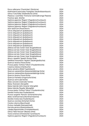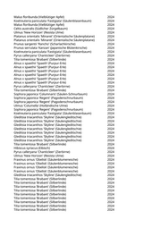 Pyrus calleryana 'Chanticleer' (Zierbirne) 2024 Koelreuteria paniculata 'Fastigiata' (Säulenblasenbaum) 2024 Ulmus 'Columella' (Holländische Ulme) 2024 Platanus x acerifolia 'Tremonia' (Schmalkronige Platane) 2024 Fraxinus spec. (Esche) 2024 Sophora japonica 'Regent' (Pagodenschnurbaum) 2024 Sophora japonica 'Regent' (Pagodenschnurbaum) 2024 Sophora japonica 'Regent' (Pagodenschnurbaum) 2024 Sophora japonica 'Regent' (Pagodenschnurbaum) 2024 Acer tataricum (Feuerahorn) 2024 Cercis siliquastrum (Judasbaum) 2024 Cercis siliquastrum (Judasbaum) 2024 Cercis siliquastrum (Judasbaum) 2024 Cercis siliquastrum (Judasbaum) 2024 Cercis siliquastrum (Judasbaum) 2024 Cercis siliquastrum (Judasbaum) 2024 Cercis siliquastrum (Judasbaum) 2024 Cercis siliquastrum (Judasbaum) 2024 Zelkova serrata 'Green Vase' (Kugelzelkova) 2024 Zelkova serrata 'Green Vase' (Kugelzelkova) 2024 Zelkova serrata 'Green Vase' (Kugelzelkova) 2024 Zelkova serrata 'Green Vase' (Kugelzelkova) 2024 Zelkova serrata 'Green Vase' (Kugelzelkova) 2024 Alnus x spaethii 'Spaeth‘ (Purpur-Erle) 2024 Gleditsia triacanthos 'Skyline' (Säulengleditschie) 2024 Quercus texana (Texas-Eiche) 2024 Prunus padus 'Schloss Tiefurt' (Traubenkirsche) 2024 Carpinus betulus (Hainbuche) 2024 Nyssa sylvatica (Wald-Tupelobaum) 2024 Quercus castaneifolia (Kastanienblättrige Eiche) 2024 Quercus castaneifolia (Kastanienblättrige Eiche) 2024 Quercus texana (Texas-Eiche) 2024 Quercus frainetto (Ungarische Eiche) 2024 Quercus cerris (Zerreiche) 2024 Abies concolor (Colorado-Tanne) 2024 Malus 'Evereste' (Zierapfel) 2024 Malus hybride 'John Downie' (Zierapfel) 2024 Malus hybrida 'Royalty' (Blutapfel) 2024 Prunus padus 'Schloss Tiefurt' (Traubenkirsche) 2024 Davidia involucrata (Taubenbaum) 2024 Prunus sargentii 'Rancho' (Scharlachkirsche) 2024 Abies nordmanniana (Nordmannstanne) 2024 Davidia involucrata (Taubenbaum) 2024 Quercus coccinea (Scharlach-Eiche) 2024 Corylus colurna (Baumhasel) 2024 Prunus mahaleb (Steinweichsel) 2024 Parrotia persica (Eisenholzbaum) 2024 Catalpa bignonioides (Trompetenbaum) 2024 Ulmus 'New Horizon' (Resista Ulme) 2024 Toona sinensis (Chinesischer Surenbaum) 2024 Sophora japonica 'Regent' (Pagodenschnurbaum) 2024