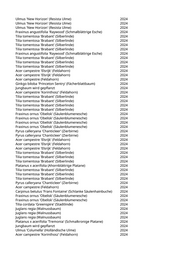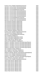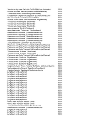 Tilia tomentosa 'Brabant' (Silberlinde) 2024 Quercus robur 'Fastigiata' (Säuleneiche) 2024 Tilia tomentosa 'Brabant' (Silberlinde) 2024 Pyrus calleryana 'Chanticleer' (Zierbirne) 2024 Pyrus calleryana 'Chanticleer' (Zierbirne) 2024 Tilia tomentosa 'Brabant' (Silberlinde) 2024 Celtis australis (Südlicher Zürgelbaum) 2024 Celtis australis (Südlicher Zürgelbaum) 2024 Pyrus calleryana 'Chanticleer' (Zierbirne) 2024 Pyrus calleryana 'Chanticleer' (Zierbirne) 2024 Pyrus calleryana 'Chanticleer' (Zierbirne) 2024 Ulmus 'New Horizon' (Resista Ulme) 2024 Tilia tomentosa 'Brabant' (Silberlinde) 2024 Tilia tomentosa 'Brabant' (Silberlinde) 2024 Tilia tomentosa 'Brabant' (Silberlinde) 2024 Tilia tomentosa 'Brabant' (Silberlinde) 2024 Tilia tomentosa 'Brabant' (Silberlinde) 2024 Tilia tomentosa 'Brabant' (Silberlinde) 2024 Ulmus 'New Horizon' (Resista Ulme) 2024 Tilia tomentosa 'Brabant' (Silberlinde) 2024 Tilia tomentosa 'Brabant' (Silberlinde) 2024 Tilia tomentosa 'Brabant' (Silberlinde) 2024 Tilia tomentosa 'Brabant' (Silberlinde) 2024 Tilia tomentosa 'Brabant' (Silberlinde) 2024 Tilia tomentosa 'Brabant' (Silberlinde) 2024 Tilia tomentosa 'Brabant' (Silberlinde) 2024 Celtis australis (Südlicher Zürgelbaum) 2024 Prunus serrulata 'Kanzan' (Japanische Blütenkirsche) 2024 Tilia tomentosa 'Brabant' (Silberlinde) 2024 Pyrus calleryana 'Chanticleer' (Zierbirne) 2024 Fraxinus ornus 'Obelisk' (Säulenblumenesche) 2024 Acer campestre 'Elsrijk' (Feldahorn) 2024 Fraxinus angustifolia 'Raywood' (Schmalblättrige Esche) 2024 Fraxinus angustifolia 'Raywood' (Schmalblättrige Esche) 2024 Acer campestre 'Elsrijk' (Feldahorn) 2024 Fraxinus pennsylvanica 'Cimmaron' (Rotesche) 2024 Gleditsia triacanthos 'Skyline' (Säulengleditschie) 2024 Gleditsia triacanthos 'Skyline' (Säulengleditschie) 2024 Aesculus hippocastanum (Rosskastanie) 2024 Pyrus nivalis 'Catalia' (Schneebirne) 2024 Aesculus x carnea (Rotblühende Kastanie) 2024 Aesculus hippocastanum (Rosskastanie) 2024 Betula pendula (Weißbirke) 2024 Populus nigra 'Italica' (Pyramidenpappel) 2024 Salix alba 'Tristis' (Trauerweide) 2024 Betula pendula (Weißbirke) 2024 Populus tremula 'Erecta' (Säulenzitterpappel) 2024 Malus hybrida 'Royalty' (Blutapfel) 2024 Acer opalus (Italienischer Ahorn) 2024 Acer x freemanii 'Autumn Blaze' (Rot-Ahorn 'Autumn Blaze') 2024 Pterocarya fraxinifolia (Kaukasische Flügelnuss) 2024