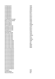 Landgutgasse 1005 Landgutgasse 1006 Landgutgasse 1007 Landgutgasse 2009 Landgutgasse 2010 Landgutgasse 2011 Landgutgasse 2012 Landgutgasse 2013 Landgutgasse 2014 Landgutgasse 2015 Leopoldsdorfer Straße 2045 Maria-Lassnig-Straße 2030 Neilreichgasse 1029 Neilreichgasse 2032 Neilreichgasse 2078/A Neugrabenstraße 1030 Neugrabenstraße 2013 Neugrabenstraße 2014 Neugrabenstraße 2022 Neusetzgasse 1004 Oberlaaer Straße 1018 Otto-Probst-Platz 1009 Otto-Probst-Platz 1009/A Otto-Probst-Platz 1011 Otto-Probst-Platz 1028 Otto-Probst-Platz 1032/A Otto-Probst-Straße 1008 Otto-Probst-Straße 125 Otto-Probst-Straße 204 Otto-Probst-Straße 2064 Otto-Probst-Straße 2095 Otto-Probst-Straße 3049 Pernerstorfergasse Pernerstorfergasse Pernerstorfergasse Pernerstorfergasse Pernerstorfergasse Pernerstorfergasse Pernerstorfergasse Pernerstorfergasse Pernerstorfergasse Pernerstorfergasse Pernerstorfergasse Pernerstorfergasse Pernerstorfergasse Pernerstorfergasse Pernerstorfergasse Pernerstorfergasse Pickgasse 1001 Planetengasse 1001 Platz der Kulturen 102