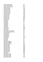 Felix-Mottl-Straße 225 Felix-Mottl-Straße 256 Felix-Mottl-Straße 262 Formanekgasse 101 Formanekgasse 254 Friedlgasse 207 Friedlgasse 211 Gallmeyergasse 132 Gräfweg 119 Gräfweg 121 Gräfweg 127 Gregor-Mendel-Straße 246 Gregor-Mendel-Straße 249 Gregor-Mendel-Straße 278 Greinergasse 101 Grinzinger Allee 213 Grinzinger Allee 257 Grinzinger Allee 272 Grinzinger Steig 204 Grinzinger Straße 1017 Grinzinger Straße 1030 Grinzinger Straße 1033 Grinzinger Straße 1038 Grinzinger Straße 1040 Grinzinger Straße 1044 Grinzinger Straße 1062 Grinzinger Straße 1088 Grinzinger Straße 1103 Grinzinger Straße 1107 Grinzinger Straße 2015 Grinzinger Straße 2016 Gugitzgasse 103 Gugitzgasse 104 Gugitzgasse 201 Gugitzgasse 202 Guneschgasse 143 Gustav-Tschermak-Gasse 137 Hackenberggasse 222 Hammerschmidtgasse 204 Hardtgasse 211 Hartäckerstraße 1052 Hartäckerstraße 1135 Hartäckerstraße 2021 Hartäckerstraße 2051 Hartäckerstraße 2065/A Hartäckerstraße 2066 Hartäckerstraße 2067 Hartäckerstraße 2092 Hartäckerstraße 2101 Hartäckerstraße 2141 Hartäckerstraße 2154