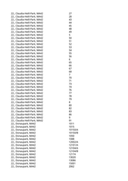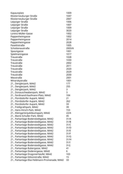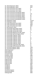 Kapaunplatz 1009 Klosterneuburger Straße 1047 Klosterneuburger Straße 2067 Leipziger Straße 1006 Leipziger Straße 1007 Leipziger Straße 1009 Leipziger Straße 3020 Lorenz-Müller-Gasse 1002 Pappenheimgasse 1002 Pappenheimgasse 2014 Pappenheimgasse 2028 Pasettistraße 1005 Schottenaustraße 2003/A Spaungasse 1001 Spielmanngasse 1017 Treustraße 1028 Treustraße 1030 Treustraße 2002 Treustraße 2011 Treustraße 2020 Treustraße 2029 Treustraße 2030 Wexstraße 2001 Winarskystraße 1001 21., Denglerpark, MA42 177 21., Denglerpark, MA42 255 21., Denglerpark, MA42 3 21., Donauschwabenpark, MA42 3 21., Ferdinand-Kaufmann-Platz, MA42 104 21., Floridsdorfer Aupark, MA42 21 21., Floridsdorfer Aupark, MA42 262 21., Floridsdorfer Aupark, MA42 33 21., Freiligrathpark, MA42 39 21., Hans-Hirsch-Park, MA42 153 21., Kleingartenjubiläumspark, MA42 22/A 21., Marie-Schuller-Park, MA42 45 21., Parkanlage Bodenstedtgasse, MA42 31/A 21., Parkanlage Bodenstedtgasse, MA42 31/B 21., Parkanlage Bodenstedtgasse, MA42 31/C 21., Parkanlage Bodenstedtgasse, MA42 31/D 21., Parkanlage Bodenstedtgasse, MA42 31/E 21., Parkanlage Bodenstedtgasse, MA42 31/F 21., Parkanlage Bodenstedtgasse, MA42 31/G 21., Parkanlage Bodenstedtgasse, MA42 31/H 21., Parkanlage Bodenstedtgasse, MA42 31/I 21., Parkanlage Bodenstedtgasse, MA42 31/J 21., Parkanlage Bubergasse, MA42 41 21., Parkanlage Doderergasse, MA42 6 21., Parkanlage Dragonerhäufel, MA42 103 21., Parkanlage Edisonstraße, MA42 15 21., Parkanlage Else-Feldmann-Promenade, MA42 33