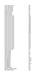 Franz-Fellner-Gasse 208 Franz-Loidl-Straße 107 Franz-Loidl-Straße 108 Gartenheimstraße 206 Gartenheimstraße 219 Goldemundweg 101 Goldemundweg 201 Goldemundweg 204 Grete-Zimmer-Gasse 1001 Grete-Zimmer-Gasse 1002 Grete-Zimmer-Gasse 1003 Grete-Zimmer-Gasse 1004 Grete-Zimmer-Gasse 1005 Grete-Zimmer-Gasse 1006 Grete-Zimmer-Gasse 2002 Grete-Zimmer-Gasse 2003 Grete-Zimmer-Gasse 2004 Grete-Zimmer-Gasse 2005 Grete-Zimmer-Gasse 2006 Grete-Zimmer-Gasse 2007 Grete-Zimmer-Gasse 2008 Grete-Zimmer-Gasse 2009 Grete-Zimmer-Gasse 2010 Grete-Zimmer-Gasse 2011 Grete-Zimmer-Gasse 2012 Grete-Zimmer-Gasse 2013 Grete-Zimmer-Gasse 2014 Grete-Zimmer-Gasse 2015 Grete-Zimmer-Gasse 2016 Grete-Zimmer-Gasse 2017 Grete-Zimmer-Gasse 2018 Grete-Zimmer-Gasse 2019 Grete-Zimmer-Gasse 2020 Grete-Zimmer-Gasse 2021 Gumplowiczstraße 113 Haberergasse 117 Haberergasse 118 Haberergasse 209 Haberergasse 210 Hänischgasse 231 Hänischgasse 232 Hardeggasse 148/A Hardeggasse 153/A Hardeggasse 153/B Hardeggasse 201 Hardeggasse 201/A Hardeggasse 205 Hardeggasse 301 Hausfeldstraße 2023 Hermann-Gebauer-Straße 215 Hirschstettner Allee 1001