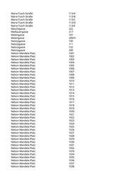 Maria-Tusch-Straße 113/A Maria-Tusch-Straße 113/B Maria-Tusch-Straße 113/C Maria-Tusch-Straße 113/D Maria-Tusch-Straße 113/E Maschlgasse 222 Meißauergasse 217 Melangasse 107 Melangasse 209/H Natorpgasse 100 Natorpgasse 111 Natorpgasse 132 Natorpgasse 200 Nelson-Mandela-Platz 1001 Nelson-Mandela-Platz 1002 Nelson-Mandela-Platz 1003 Nelson-Mandela-Platz 1004 Nelson-Mandela-Platz 1005 Nelson-Mandela-Platz 1006 Nelson-Mandela-Platz 1007 Nelson-Mandela-Platz 1008 Nelson-Mandela-Platz 1009 Nelson-Mandela-Platz 1010 Nelson-Mandela-Platz 1011 Nelson-Mandela-Platz 1012 Nelson-Mandela-Platz 1013 Nelson-Mandela-Platz 1014 Nelson-Mandela-Platz 1015 Nelson-Mandela-Platz 1016 Nelson-Mandela-Platz 1017 Nelson-Mandela-Platz 1018 Nelson-Mandela-Platz 1019 Nelson-Mandela-Platz 1020 Nelson-Mandela-Platz 1021 Nelson-Mandela-Platz 1022 Nelson-Mandela-Platz 1023 Nelson-Mandela-Platz 1024 Nelson-Mandela-Platz 1025 Nelson-Mandela-Platz 1026 Nelson-Mandela-Platz 1027 Nelson-Mandela-Platz 1028 Nelson-Mandela-Platz 1029 Nelson-Mandela-Platz 1030 Nelson-Mandela-Platz 1031 Nelson-Mandela-Platz 1032 Nelson-Mandela-Platz 1033 Nelson-Mandela-Platz 1034 Nelson-Mandela-Platz 1035 Nelson-Mandela-Platz 1036 Nelson-Mandela-Platz 1037 Nelson-Mandela-Platz 1038