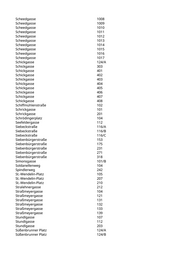 Scheedgasse 1008 Scheedgasse 1009 Scheedgasse 1010 Scheedgasse 1011 Scheedgasse 1012 Scheedgasse 1013 Scheedgasse 1014 Scheedgasse 1015 Scheedgasse 1016 Scheedgasse 1017 Schickgasse 124/A Schickgasse 303 Schickgasse 401 Schickgasse 402 Schickgasse 403 Schickgasse 404 Schickgasse 405 Schickgasse 406 Schickgasse 407 Schickgasse 408 Schiffmühlenstraße 102 Schrickgasse 101 Schrickgasse 201 Schrödingerplatz 104 Seefeldergasse 112 Siebeckstraße 116/A Siebeckstraße 116/B Siebeckstraße 116/C Siebenbürgerstraße 153 Siebenbürgerstraße 175 Siebenbürgerstraße 231 Siebenbürgerstraße 271 Siebenbürgerstraße 318 Simonsgasse 101/B Soldanellenweg 104 Spindlerweg 242 St.-Wendelin-Platz 105 St.-Wendelin-Platz 207 St.-Wendelin-Platz 210 Stralehnergasse 212 Straßmeyergasse 104 Straßmeyergasse 121 Straßmeyergasse 131 Straßmeyergasse 132 Straßmeyergasse 133 Straßmeyergasse 139 Stundlgasse 107 Stundlgasse 112 Stundlgasse 203 Süßenbrunner Platz 124/A Süßenbrunner Platz 124/B