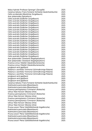 Paulownia tomentosa (Blauglockenbaum) 2025 Paulownia tomentosa (Blauglockenbaum) 2025 Paulownia tomentosa (Blauglockenbaum) 2025 Acer campestre (Feldahorn) 2025 Carpinus betulus 'Frans Fontaine' (Schlanke Säulenhainbuche) 2025 Aesculus hippocastanum 'Baumannii' (Gefülltblühende Kastanie) 2025 Liquidambar styraciflua (Amberbaum) 2025 Amelanchier ovalis (Gewöhnliche Felsenbirne) 2025 Tilia tomentosa 'Sisi' (Silberlinde) 2025 Tilia tomentosa 'Sisi' (Silberlinde) 2025 Celtis australis (Südlicher Zürgelbaum) 2025 Tilia tomentosa 'Sisi' (Silberlinde) 2025 Ulmus 'Columella' (Holländische Ulme) 2025 Ulmus 'Columella' (Holländische Ulme) 2025 Ulmus 'New Horizon' (Resista Ulme) 2025 Ulmus 'New Horizon' (Resista Ulme) 2025 Ulmus 'New Horizon' (Resista Ulme) 2025 Tilia tomentosa 'Sisi' (Silberlinde) 2025 Tilia tomentosa 'Sisi' (Silberlinde) 2025 Gleditsia triacanthos 'Skyline' (Säulengleditschie) 2025 Tilia tomentosa 'Sisi' (Silberlinde) 2025 Ulmus 'Columella' (Holländische Ulme) 2025 Ulmus 'Columella' (Holländische Ulme) 2025 Ulmus 'Columella' (Holländische Ulme) 2025 Sorbus aucuparia 'Sheerwater Seedling' (Säuleneberesche) 2025 Sorbus aucuparia 'Sheerwater Seedling' (Säuleneberesche) 2025 Fraxinus ornus 'Meczek' (Kugelblumenesche) 2025 Paulownia tomentosa (Blauglockenbaum) 2025 Prunus avium (Vogelkirsche) 2025 Prunus avium (Vogelkirsche) 2025 Tilia tomentosa 'Sisi' (Silberlinde) 2025 Populus spec. (Pappel) 2025 Quercus rubra (Roteiche) 2025 Tilia tomentosa 'Sisi' (Silberlinde) 2025 Paulownia tomentosa (Blauglockenbaum) 2025 Prunus avium 'Plena' (Gefülltblühende Vogelkirsche) 2025 Tilia tomentosa 'Sisi' (Silberlinde) 2025 Acer platanoides (Spitzahorn) 2025 Ulmus 'New Horizon' (Resista Ulme) 2025 Sophora japonica (Schnurbaum) 2025 Sophora japonica 'Regent' (Pagodenschnurbaum) 2025 Tilia mongolica (Mongolische Linde) 2025 Acer campestre 'Elsrijk' (Feldahorn) 2025 Corylus colurna (Baumhasel) 2025 Gleditsia triacanthos 'Inermis' (Dornenloser Lederhülsenbaum) 2025 Gleditsia triacanthos 'Inermis' (Dornenloser Lederhülsenbaum) 2025 Koelreuteria paniculata (Blasenbaum) 2025 Robinia pseudoacacia (Scheinakazie) 2025 Corylus colurna (Baumhasel) 2025 Aesculus flava (Gelbe Kastanie) 2025 Quercus robur (Stieleiche) 2025