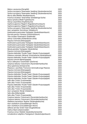 Fraxinus ornus 'Obelisk' (Säulenblumenesche) 2025 Pinus sylvestris (Gemeine Kiefer) 2025 Quercus robur (Stieleiche) 2025 Pinus sylvestris (Gemeine Kiefer) 2025 Robinia x margaretta 'Casque Rouge' (Scheinakazie Casque Rouge) 2025 Albizia julibrissin (Seidenakazie) 2025 Photinia x fraseri (Glanzmispel) 2025 Fagus sylvatica 'Atropurpurea' (Blutbuche) 2025 Celtis australis (Südlicher Zürgelbaum) 2025 Quercus spec. (Eiche) 2025 Paulownia tomentosa (Blauglockenbaum) 2025 Jungbaum wird gepflanzt 2025 Pyrus salicifolia 'Pendula' (Hängebirne) 2025 Paulownia tomentosa (Blauglockenbaum) 2025 Ginkgo biloba 'Lakeview' (Fächerblattbaum) 2025 Ginkgo biloba 'Lakeview' (Fächerblattbaum) 2025 Abies grandis (Küsten Tanne) 2025 Carpinus spec. (Hainbuche) 2025 Platanus orientalis (Orientalische Platane) 2025 Corylus colurna (Baumhasel) 2025 Corylus colurna (Baumhasel) 2025 Corylus colurna (Baumhasel) 2025 Davidia involucrata (Taubenbaum) 2025 Morus alba (Weißer Maulbeerbaum) 2025 Cercis siliquastrum (Judasbaum) 2025 Tilia tomentosa (Silberlinde) 2025 Paulownia tomentosa (Blauglockenbaum) 2025 Betula pendula (Weißbirke) 2025 Betula pendula (Weißbirke) 2025 Betula pendula (Weißbirke) 2025 Populus nigra 'Italica' (Pyramidenpappel) 2025 Juglans regia (Walnussbaum) 2025 Platanus orientalis (Orientalische Platane) 2025 Sorbus intermedia (Schwedische Mehlbeere) 2025 Liriodendron tulipifera (Tulpenbaum) 2025 Sophora japonica 'Regent' (Pagodenschnurbaum) 2025 Sophora japonica 'Regent' (Pagodenschnurbaum) 2025 Ulmus 'Columella' (Holländische Ulme) 2025 Ulmus 'Columella' (Holländische Ulme) 2025 Tilia cordata 'Rancho' (Kleinblättrige Winterlinde) 2025 Tilia cordata 'Rancho' (Kleinblättrige Winterlinde) 2025 Pterocarya fraxinifolia (Kaukasische Flügelnuss) 2025 Pterocarya fraxinifolia (Kaukasische Flügelnuss) 2025 Pterocarya fraxinifolia (Kaukasische Flügelnuss) 2025 Corylus colurna (Baumhasel) 2025 Corylus colurna (Baumhasel) 2025 Corylus colurna (Baumhasel) 2025 Liriodendron tulipifera (Tulpenbaum) 2025 Liriodendron tulipifera (Tulpenbaum) 2025 Liriodendron tulipifera (Tulpenbaum) 2025 Sophora japonica (Schnurbaum) 2025