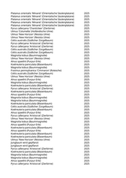 Platanus x acerifolia 'Tremonia' (Schmalkronige Platane) 2025 Platanus x acerifolia 'Tremonia' (Schmalkronige Platane) 2025 Platanus x acerifolia 'Tremonia' (Schmalkronige Platane) 2025 Platanus x acerifolia 'Tremonia' (Schmalkronige Platane) 2025 Koelreuteria paniculata (Blasenbaum) 2025 Tilia americana 'Nova' (Amerikanische Linde) 2025 Tilia americana 'Nova' (Amerikanische Linde) 2025 Tilia americana 'Nova' (Amerikanische Linde) 2025 Tilia americana 'Nova' (Amerikanische Linde) 2025 Tilia americana 'Nova' (Amerikanische Linde) 2025 Tilia americana 'Nova' (Amerikanische Linde) 2025 Tilia americana 'Nova' (Amerikanische Linde) 2025 Tilia americana 'Nova' (Amerikanische Linde) 2025 Tilia americana 'Nova' (Amerikanische Linde) 2025 Tilia americana 'Nova' (Amerikanische Linde) 2025 Tilia americana 'Nova' (Amerikanische Linde) 2025 Tilia americana 'Nova' (Amerikanische Linde) 2025 Tilia americana 'Nova' (Amerikanische Linde) 2025 Tilia americana 'Nova' (Amerikanische Linde) 2025 Tilia americana 'Nova' (Amerikanische Linde) 2025 Tilia americana 'Nova' (Amerikanische Linde) 2025 Tilia americana 'Nova' (Amerikanische Linde) 2025 Tilia americana 'Nova' (Amerikanische Linde) 2025 Tilia americana 'Nova' (Amerikanische Linde) 2025 Tilia americana 'Nova' (Amerikanische Linde) 2025 Tilia americana 'Nova' (Amerikanische Linde) 2025 Tilia americana 'Nova' (Amerikanische Linde) 2025 Fraxinus pennsylvanica 'Cimmaron' (Rotesche) 2025 Fraxinus pennsylvanica 'Cimmaron' (Rotesche) 2025 Fraxinus pennsylvanica 'Cimmaron' (Rotesche) 2025 Acer campestre 'Elsrijk' (Feldahorn) 2025 Acer campestre 'Elsrijk' (Feldahorn) 2025 Gleditsia triacanthos 'Skyline' (Säulengleditschie) 2025 Ulmus 'New Horizon' (Resista Ulme) 2025 Ulmus 'New Horizon' (Resista Ulme) 2025 Ulmus 'New Horizon' (Resista Ulme) 2025 Acer campestre 'Korinthosz' (Feldahorn) 2025 Pyrus calleryana 'Aristocrat' (Zierbirne) 2025 Gleditsia triacanthos 'Skyline' (Säulengleditschie) 2025 Platanus spec. (Platane) 2025 Platanus spec. (Platane) 2025 Platanus spec. (Platane) 2025 Alnus x spaethii 'Spaeth‘ (Purpur-Erle) 2025 Alnus x spaethii 'Spaeth‘ (Purpur-Erle) 2025 Alnus x spaethii 'Spaeth‘ (Purpur-Erle) 2025 Platanus spec. (Platane) 2025 Platanus spec. (Platane) 2025 Alnus x spaethii 'Spaeth‘ (Purpur-Erle) 2025 Pyrus calleryana 'Aristocrat' (Zierbirne) 2025 Platanus orientalis 'Minaret' (Orientalische Säulenplatane) 2025 Platanus orientalis 'Minaret' (Orientalische Säulenplatane) 2025