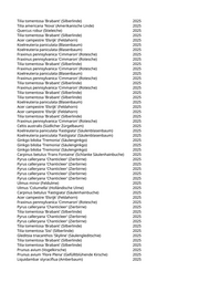 Tilia tomentosa 'Brabant' (Silberlinde) 2025 Tilia americana 'Nova' (Amerikanische Linde) 2025 Quercus robur (Stieleiche) 2025 Tilia tomentosa 'Brabant' (Silberlinde) 2025 Acer campestre 'Elsrijk' (Feldahorn) 2025 Koelreuteria paniculata (Blasenbaum) 2025 Koelreuteria paniculata (Blasenbaum) 2025 Fraxinus pennsylvanica 'Cimmaron' (Rotesche) 2025 Fraxinus pennsylvanica 'Cimmaron' (Rotesche) 2025 Tilia tomentosa 'Brabant' (Silberlinde) 2025 Fraxinus pennsylvanica 'Cimmaron' (Rotesche) 2025 Koelreuteria paniculata (Blasenbaum) 2025 Fraxinus pennsylvanica 'Cimmaron' (Rotesche) 2025 Tilia tomentosa 'Brabant' (Silberlinde) 2025 Fraxinus pennsylvanica 'Cimmaron' (Rotesche) 2025 Tilia tomentosa 'Brabant' (Silberlinde) 2025 Tilia tomentosa 'Brabant' (Silberlinde) 2025 Koelreuteria paniculata (Blasenbaum) 2025 Acer campestre 'Elsrijk' (Feldahorn) 2025 Acer campestre 'Elsrijk' (Feldahorn) 2025 Tilia tomentosa 'Brabant' (Silberlinde) 2025 Fraxinus pennsylvanica 'Cimmaron' (Rotesche) 2025 Celtis australis (Südlicher Zürgelbaum) 2025 Koelreuteria paniculata 'Fastigiata' (Säulenblasenbaum) 2025 Koelreuteria paniculata 'Fastigiata' (Säulenblasenbaum) 2025 Ginkgo biloba 'Tremonia' (Säulenginkgo) 2025 Ginkgo biloba 'Tremonia' (Säulenginkgo) 2025 Ginkgo biloba 'Tremonia' (Säulenginkgo) 2025 Carpinus betulus 'Frans Fontaine' (Schlanke Säulenhainbuche) 2025 Pyrus calleryana 'Chanticleer' (Zierbirne) 2025 Pyrus calleryana 'Chanticleer' (Zierbirne) 2025 Pyrus calleryana 'Chanticleer' (Zierbirne) 2025 Pyrus calleryana 'Chanticleer' (Zierbirne) 2025 Pyrus calleryana 'Chanticleer' (Zierbirne) 2025 Ulmus minor (Feldulme) 2025 Ulmus 'Columella' (Holländische Ulme) 2025 Carpinus betulus 'Fastigiata' (Säulenhainbuche) 2025 Acer campestre 'Elsrijk' (Feldahorn) 2025 Fraxinus pennsylvanica 'Cimmaron' (Rotesche) 2025 Pyrus calleryana 'Chanticleer' (Zierbirne) 2025 Tilia tomentosa 'Brabant' (Silberlinde) 2025 Pyrus calleryana 'Chanticleer' (Zierbirne) 2025 Pyrus calleryana 'Chanticleer' (Zierbirne) 2025 Tilia tomentosa 'Brabant' (Silberlinde) 2025 Tilia tomentosa 'Sisi' (Silberlinde) 2025 Gleditsia triacanthos 'Skyline' (Säulengleditschie) 2025 Tilia tomentosa 'Brabant' (Silberlinde) 2025 Tilia tomentosa 'Brabant' (Silberlinde) 2025 Prunus avium (Vogelkirsche) 2025 Prunus avium 'Flore Plena' (Gefülltblühende Kirsche) 2025 Liquidambar styraciflua (Amberbaum) 2025