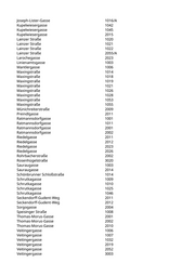 Joseph-Lister-Gasse 1016/A Kupelwiesergasse 1042 Kupelwiesergasse 1045 Kupelwiesergasse 2015 Lainzer Straße 1020 Lainzer Straße 1021 Lainzer Straße 1022 Lainzer Straße 2055/A Larochegasse 2023 Linienamtsgasse 1003 Mantlergasse 1006 Maxingstraße 1014 Maxingstraße 1018 Maxingstraße 1019 Maxingstraße 1021 Maxingstraße 1026 Maxingstraße 1028 Maxingstraße 1053 Maxingstraße 1055 Münichreiterstraße 2009 Preindlgasse 2011 Ratmannsdorfgasse 1001 Ratmannsdorfgasse 1011 Ratmannsdorfgasse 2001 Ratmannsdorfgasse 2002 Riedelgasse 2011 Riedelgasse 2012 Riedelgasse 2023 Riedelgasse 2026 Rohrbacherstraße 2002 Rosenhügelstraße 3020 Sauraugasse 1003 Sauraugasse 2014 Schönbrunner Schloßstraße 1014 Schrutkagasse 1009 Schrutkagasse 1010 Schrutkagasse 1025 Schrutkagasse 1046 Seckendorff-Gudent-Weg 2011 Seckendorff-Gudent-Weg 2012 Sorgogasse 2004 Speisinger Straße 1008 Thomas-Morus-Gasse 2001 Thomas-Morus-Gasse 2002 Thomas-Morus-Gasse 2010 Veitingergasse 1006 Veitingergasse 1007 Veitingergasse 1032 Veitingergasse 2019 Veitingergasse 2052 Veitingergasse 3003