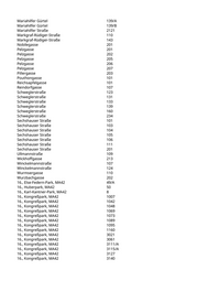 Vogtgasse 101 Wolfersberggasse 302 Zehetnergasse 1004 Zehetnergasse 2024 Zehetnergasse 2042 15., Auer-Welsbach-Park, MA42 10039 15., Auer-Welsbach-Park, MA42 10040 15., Auer-Welsbach-Park, MA42 10056/A 15., Auer-Welsbach-Park, MA42 10091 15., Auer-Welsbach-Park, MA42 1025 15., Auer-Welsbach-Park, MA42 1026 15., Auer-Welsbach-Park, MA42 11007 15., Auer-Welsbach-Park, MA42 11009 15., Auer-Welsbach-Park, MA42 14022/A 15., Auer-Welsbach-Park, MA42 14043 15., Auer-Welsbach-Park, MA42 2003 15., Auer-Welsbach-Park, MA42 3021 15., Auer-Welsbach-Park, MA42 3037 15., Auer-Welsbach-Park, MA42 3135/A 15., Auer-Welsbach-Park, MA42 3168 15., Auer-Welsbach-Park, MA42 3182/A 15., Auer-Welsbach-Park, MA42 5011 15., Auer-Welsbach-Park, MA42 9003/A 15., Auer-Welsbach-Park, MA42 9020 15., Auer-Welsbach-Park, MA42 9050 15., Braunhirschenpark, MA42 14 15., Dadlerpark, MA42 28/A 15., Dadlerpark, MA42 51 15., Dadlerpark, MA42 92 15., Herklotzpark, MA42 2 15., Märzpark, MA42 146 15., Märzpark, MA42 31 15., Märzpark, MA42 74 15., Märzpark, MA42 75 15., Parkanlage Kranzgasse, MA42 11 15., Parkanlage Kranzgasse, MA42 16 15., Parkanlage Linke Wienzeile, MA42 49 15., Parkanlage Oelweingasse, MA42 12 15., Parkanlage Oelweingasse, MA42 7 15., Reithofferpark, MA42 11 15., Reithofferpark, MA42 59 15., Sechshauser Park, MA42 20 15., Sechshauser Park, MA42 8 15., Vogelweidpark, MA42 103 15., Vogelweidpark, MA42 39/A 15., Vogelweidpark, MA42 39/B 15., Vogelweidpark, MA42 39/C 15., Vogelweidpark, MA42 48/A 15., Vogelweidpark, MA42 48/B 15., Vogelweidpark, MA42 48/C 15., Vogelweidpark, MA42 81/B