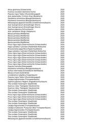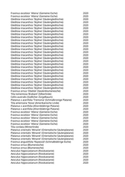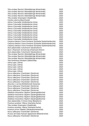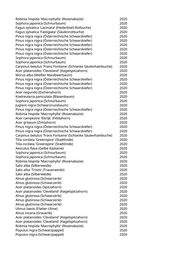 Alnus glutinosa (Schwarzerle) 2020 Fraxinus excelsior (Gemeine Esche) 2020 Populus nigra 'Italica' (Pyramidenpappel) 2020 Acer platanoides 'Crimson King' (Blutahorn) 2020 Paulownia tomentosa (Blauglockenbaum) 2020 Paulownia tomentosa (Blauglockenbaum) 2020 Metasequoia glyptostroboides (Urweltmammutbaum) 2020 Acer buergerianum (Dreizähniger Ahorn) 2020 Acer buergerianum (Dreizähniger Ahorn) 2020 Sophora japonica (Schnurbaum) 2020 Acer campestre 'Elsrijk' (Feldahorn) 2020 Betula pendula (Weißbirke) 2020 Betula pendula (Weißbirke) 2020 Betula pendula (Weißbirke) 2020 Betula pendula (Weißbirke) 2020 Betula pendula (Weißbirke) 2020 Pinus nigra nigra (Österreichische Schwarzkiefer) 2020 Fagus sylvatica 'Laciniata' (Fiederblatt-Rotbuche) 2020 Broussonetia papyrifera (Papiermaulbeere) 2020 Fagus sylvatica 'Laciniata' (Fiederblatt-Rotbuche) 2020 Pinus nigra nigra (Österreichische Schwarzkiefer) 2020 Pinus nigra nigra (Österreichische Schwarzkiefer) 2020 Pinus nigra nigra (Österreichische Schwarzkiefer) 2020 Pinus nigra nigra (Österreichische Schwarzkiefer) 2020 Pinus nigra nigra (Österreichische Schwarzkiefer) 2020 Pinus nigra nigra (Österreichische Schwarzkiefer) 2020 Populus tremula (Zitterpappel) 2020 Paulownia tomentosa (Blauglockenbaum) 2020 Sorbus intermedia (Schwedische Mehlbeere) 2020 Betula ermanii (Gold-Birke) 2020 Liriodendron tulipifera (Tulpenbaum) 2020 Populus nigra 'Italica' (Pyramidenpappel) 2020 Catalpa bignonioides (Trompetenbaum) 2020 Sophora japonica 'Regent' (Pagodenschnurbaum) 2020 Tilia cordata 'Greenspire' (Stadtlinde) 2020 Quercus robur 'Fastigiata' (Säuleneiche) 2020 Quercus robur 'Fastigiata' (Säuleneiche) 2020 Tilia cordata 'Greenspire' (Stadtlinde) 2020 Tilia cordata 'Greenspire' (Stadtlinde) 2020 Pinus nigra nigra (Österreichische Schwarzkiefer) 2020 Pinus nigra nigra (Österreichische Schwarzkiefer) 2020 Pinus nigra nigra (Österreichische Schwarzkiefer) 2020 Tilia cordata 'Greenspire' (Stadtlinde) 2020 Tilia cordata 'Greenspire' (Stadtlinde) 2020 Catalpa bignonioides (Trompetenbaum) 2020 Catalpa erubescens 'Purpurea' (Blut-Trompetenbaum) 2020 Catalpa bignonioides (Trompetenbaum) 2020 Tilia cordata 'Greenspire' (Stadtlinde) 2020 Tilia cordata 'Greenspire' (Stadtlinde) 2020 Tilia cordata 'Greenspire' (Stadtlinde) 2020 Metasequoia glyptostroboides (Urweltmammutbaum) 2020
