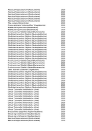 Aesculus x carnea (Rotblühende Kastanie) 2020 Aesculus hippocastanum (Rosskastanie) 2020 Aesculus hippocastanum (Rosskastanie) 2020 Aesculus hippocastanum (Rosskastanie) 2020 Robinia pseudoacacia 'Monophylla' (Straßenakazie) 2020 Robinia pseudoacacia (Scheinakazie) 2020 Tilia cordata 'Rancho' (Kleinblättrige Winterlinde) 2020 Tilia cordata 'Rancho' (Kleinblättrige Winterlinde) 2020 Tilia cordata 'Rancho' (Kleinblättrige Winterlinde) 2020 Aesculus hippocastanum (Rosskastanie) 2020 Celtis australis (Südlicher Zürgelbaum) 2020 Celtis australis (Südlicher Zürgelbaum) 2020 Fraxinus ornus 'Obelisk' (Säulenblumenesche) 2020 Fraxinus ornus 'Obelisk' (Säulenblumenesche) 2020 Celtis australis (Südlicher Zürgelbaum) 2020 Celtis australis (Südlicher Zürgelbaum) 2020 Koelreuteria paniculata 'Fastigiata' (Säulenblasenbaum) 2020 Tilia cordata 'Greenspire' (Stadtlinde) 2020 Tilia cordata 'Greenspire' (Stadtlinde) 2020 Tilia cordata 'Greenspire' (Stadtlinde) 2020 Koelreuteria paniculata 'Fastigiata' (Säulenblasenbaum) 2020 Pyrus calleryana 'Chanticleer' (Zierbirne) 2020 Pyrus calleryana 'Chanticleer' (Zierbirne) 2020 Pyrus calleryana 'Chanticleer' (Zierbirne) 2020 Pyrus calleryana 'Chanticleer' (Zierbirne) 2020 Pyrus calleryana 'Chanticleer' (Zierbirne) 2020 Tilia cordata 'Greenspire' (Stadtlinde) 2020 Tilia cordata 'Greenspire' (Stadtlinde) 2020 Tilia cordata 'Greenspire' (Stadtlinde) 2020 Tilia cordata 'Greenspire' (Stadtlinde) 2020 Tilia cordata (Winterlinde) 2020 Celtis australis (Südlicher Zürgelbaum) 2020 Aesculus hippocastanum (Rosskastanie) 2020 Populus spec. (Pappel) 2020 Aesculus x carnea (Rotblühende Kastanie) 2020 Aesculus x carnea (Rotblühende Kastanie) 2020 Aesculus x carnea (Rotblühende Kastanie) 2020 Aesculus x carnea (Rotblühende Kastanie) 2020 Aesculus x carnea (Rotblühende Kastanie) 2020 Aesculus x carnea (Rotblühende Kastanie) 2020 Aesculus x carnea (Rotblühende Kastanie) 2020 Aesculus hippocastanum (Rosskastanie) 2020 Aesculus hippocastanum (Rosskastanie) 2020 Aesculus x carnea (Rotblühende Kastanie) 2020 Ulmus 'New Horizon' (Resista Ulme) 2020 Ulmus 'New Horizon' (Resista Ulme) 2020 Ulmus 'Regal' (Resista Ulme) 2020 Ulmus 'New Horizon' (Resista Ulme) 2020 Ulmus 'New Horizon' (Resista Ulme) 2020 Ulmus 'New Horizon' (Resista Ulme) 2020 Ulmus 'New Horizon' (Resista Ulme) 2020