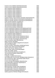Acer campestre 'Elsrijk' (Feldahorn) 2020 Pyrus calleryana 'Chanticleer' (Zierbirne) 2020 Acer campestre 'Elsrijk' (Feldahorn) 2020 Tilia tomentosa 'Brabant' (Silberlinde) 2020 Ginkgo biloba 'Autumn Gold' (Fächerblattbaum) 2020 Acer campestre 'Elsrijk' (Feldahorn) 2020 Ginkgo biloba 'Autumn Gold' (Fächerblattbaum) 2020 Ginkgo biloba 'Autumn Gold' (Fächerblattbaum) 2020 Prunus serrulata 'Kanzan' (Japanische Blütenkirsche) 2020 Prunus serrulata 'Kanzan' (Japanische Blütenkirsche) 2020 Acer platanoides 'Globosum' (Kugelspitzahorn) 2020 Aesculus hippocastanum 'Baumannii' (Gefülltblühende Kastanie) 2020 Aesculus hippocastanum 'Pyramidalis' (Pyramidenkastanie) 2020 Prunus serrulata 'Kanzan' (Japanische Blütenkirsche) 2020 Fraxinus angustifolia 'Raywood' (Schmalblättrige Esche) 2020 Acer campestre 'Elsrijk' (Feldahorn) 2020 Acer campestre 'Elsrijk' (Feldahorn) 2020 Carpinus betulus 'Frans Fontaine' (Schlanke Säulenhainbuche) 2020 Carpinus betulus 'Frans Fontaine' (Schlanke Säulenhainbuche) 2020 Morus alba 'Pyramidalis' (Pyramidenmaulbeere) 2020 Ulmus x hollandica 'Wredei' (Goldulme) 2020 Salix alba 'Tristis' (Trauerweide) 2020 Liquidambar styraciflua (Amberbaum) 2020 Salix alba 'Tristis' (Trauerweide) 2020 Liquidambar styraciflua (Amberbaum) 2020 Celtis australis (Südlicher Zürgelbaum) 2020 Acer campestre 'Elsrijk' (Feldahorn) 2020 Salix alba 'Tristis' (Trauerweide) 2020 Sorbus x thuringiaca 'Fastigiata' (Säulenmehlbeere) 2020 Acer campestre 'Elsrijk' (Feldahorn) 2020 Robinia pseudoacacia 'Umbraculifera' (Kugelakazie) 2020 Acer campestre 'Elsrijk' (Feldahorn) 2020 Zelkova serrata (Zelkove) 2020 Acer campestre 'Elsrijk' (Feldahorn) 2020 Acer campestre 'Elsrijk' (Feldahorn) 2020 Zelkova serrata (Zelkove) 2020 Acer campestre 'Elsrijk' (Feldahorn) 2020 Carpinus betulus 'Frans Fontaine' (Schlanke Säulenhainbuche) 2020 Acer campestre 'Elsrijk' (Feldahorn) 2020 Zelkova serrata (Zelkove) 2020 Zelkova serrata (Zelkove) 2020 Morus alba 'Fastigiata' (Säulenmaulbeere) 2020 Prunus padus (Traubenkirsche) 2020 Acer campestre 'Elsrijk' (Feldahorn) 2020 Liquidambar styraciflua (Amberbaum) 2020 Liquidambar styraciflua (Amberbaum) 2020 Zelkova serrata (Zelkove) 2020 Tilia cordata 'Rancho' (Kleinblättrige Winterlinde) 2020 Carpinus betulus 'Frans Fontaine' (Schlanke Säulenhainbuche) 2020 Carpinus betulus 'Frans Fontaine' (Schlanke Säulenhainbuche) 2020 Carpinus betulus 'Frans Fontaine' (Schlanke Säulenhainbuche) 2020