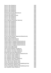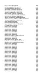 Corylus colurna (Baumhasel) 2020 Acer pseudoplatanus (Bergahorn) 2020 Acer pseudoplatanus (Bergahorn) 2020 Tilia cordata 'Greenspire' (Stadtlinde) 2020 Tilia cordata 'Greenspire' (Stadtlinde) 2020 Tilia tomentosa 'Brabant' (Silberlinde) 2020 Celtis australis (Südlicher Zürgelbaum) 2020 Zelkova serrata 'Green Vase' (Kugelzelkova) 2020 Celtis australis (Südlicher Zürgelbaum) 2020 Zelkova serrata 'Green Vase' (Kugelzelkova) 2020 Amelanchier laevis 'Ballerina' (Essbare Felsenbirne) 2020 Tilia tomentosa 'Brabant' (Silberlinde) 2020 Malus sylvestris (Holzapfel) 2020 Prunus avium (Vogelkirsche) 2020 Pyrus calleryana 'Aristocrat' (Zierbirne) 2020 Prunus armeniaca (Marille) 2020 Quercus robur (Stieleiche) 2020 Quercus robur (Stieleiche) 2020 Quercus robur (Stieleiche) 2020 Quercus robur (Stieleiche) 2020 Quercus robur (Stieleiche) 2020 Quercus robur (Stieleiche) 2020 Quercus robur (Stieleiche) 2020 Gleditsia triacanthos (Lederhülsenbaum) 2020 Quercus robur (Stieleiche) 2020 Quercus robur (Stieleiche) 2020 Ulmus 'New Horizon' (Resista Ulme) 2020 Paulownia tomentosa (Blauglockenbaum) 2020 Paulownia tomentosa (Blauglockenbaum) 2020 Quercus robur (Stieleiche) 2020 Quercus robur (Stieleiche) 2020 Quercus robur (Stieleiche) 2020 Quercus robur (Stieleiche) 2020 Quercus robur (Stieleiche) 2020 Quercus robur (Stieleiche) 2020 Quercus robur (Stieleiche) 2020 Quercus robur (Stieleiche) 2020 Quercus robur (Stieleiche) 2020 Quercus robur (Stieleiche) 2020 Quercus robur (Stieleiche) 2020 Quercus robur (Stieleiche) 2020 Quercus robur (Stieleiche) 2020 Quercus robur (Stieleiche) 2020 Quercus robur (Stieleiche) 2020 Quercus robur (Stieleiche) 2020 Quercus robur (Stieleiche) 2020 Quercus robur (Stieleiche) 2020 Quercus robur (Stieleiche) 2020 Quercus robur (Stieleiche) 2020 Quercus robur (Stieleiche) 2020 Quercus robur (Stieleiche) 2020