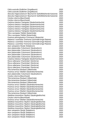Celtis australis (Südlicher Zürgelbaum) 2020 Celtis australis (Südlicher Zürgelbaum) 2020 Aesculus hippocastanum 'Baumannii' (Gefülltblühende Kastanie) 2020 Aesculus hippocastanum 'Baumannii' (Gefülltblühende Kastanie) 2020 Corylus colurna (Baumhasel) 2020 Corylus colurna (Baumhasel) 2020 Carpinus betulus 'Fastigiata' (Säulenhainbuche) 2020 Carpinus betulus 'Fastigiata' (Säulenhainbuche) 2020 Carpinus betulus 'Fastigiata' (Säulenhainbuche) 2020 Carpinus betulus 'Fastigiata' (Säulenhainbuche) 2020 Carpinus betulus 'Fastigiata' (Säulenhainbuche) 2020 Tilia x europaea 'Pallida' (Kaiserlinde) 2020 Tilia x europaea 'Pallida' (Kaiserlinde) 2020 Fraxinus pennsylvanica 'Cimmaron' (Rotesche) 2020 Platanus x acerifolia 'Tremonia' (Schmalkronige Platane) 2020 Platanus x acerifolia 'Tremonia' (Schmalkronige Platane) 2020 Platanus x acerifolia 'Tremonia' (Schmalkronige Platane) 2020 Acer campestre 'Elsrijk' (Feldahorn) 2020 Acer platanoides 'Columnare' (Säulenahorn) 2020 Acer platanoides 'Columnare' (Säulenahorn) 2020 Acer platanoides 'Columnare' (Säulenahorn) 2020 Acer platanoides 'Columnare' (Säulenahorn) 2020 Acer platanoides 'Columnare' (Säulenahorn) 2020 Carpinus betulus 'Fastigiata' (Säulenhainbuche) 2020 Pyrus calleryana 'Chanticleer' (Zierbirne) 2020 Pyrus calleryana 'Chanticleer' (Zierbirne) 2020 Pyrus calleryana 'Chanticleer' (Zierbirne) 2020 Pyrus calleryana 'Chanticleer' (Zierbirne) 2020 Tilia tomentosa 'Brabant' (Silberlinde) 2020 Fraxinus ornus 'Obelisk' (Säulenblumenesche) 2020 Acer platanoides 'Columnare' (Säulenahorn) 2020 Corylus colurna (Baumhasel) 2020 Tilia tomentosa 'Brabant' (Silberlinde) 2020 Tilia tomentosa 'Brabant' (Silberlinde) 2020 Tilia tomentosa 'Brabant' (Silberlinde) 2020 Fraxinus ornus 'Obelisk' (Säulenblumenesche) 2020 Fraxinus ornus 'Obelisk' (Säulenblumenesche) 2020 Fraxinus ornus 'Obelisk' (Säulenblumenesche) 2020 Fraxinus ornus 'Obelisk' (Säulenblumenesche) 2020 Tilia tomentosa 'Brabant' (Silberlinde) 2020 Gleditsia triacanthos 'Skyline' (Säulengleditschie) 2020 Corylus colurna (Baumhasel) 2020 Fraxinus ornus 'Obelisk' (Säulenblumenesche) 2020 Gleditsia triacanthos 'Skyline' (Säulengleditschie) 2020 Gleditsia triacanthos 'Skyline' (Säulengleditschie) 2020 Gleditsia triacanthos 'Skyline' (Säulengleditschie) 2020 Gleditsia triacanthos 'Skyline' (Säulengleditschie) 2020 Acer campestre 'Elsrijk' (Feldahorn) 2020 Acer campestre 'Elsrijk' (Feldahorn) 2020 Acer campestre 'Elsrijk' (Feldahorn) 2020 Acer campestre 'Elsrijk' (Feldahorn) 2020