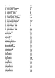 10., Parkanlage Keplerplatz, MA42 36 10., Parkanlage Kurt-Tichy-Gasse, MA42 1 10., Parkanlage Kurt-Tichy-Gasse, MA42 28/A 10., Parkanlage Kurt-Tichy-Gasse, MA42 3 10., Parkanlage Laxenburger Straße, MA42 106 10., Parkanlage Laxenburger Straße, MA42 184 10., Parkanlage Laxenburger Straße, MA42 30 10., Parkanlage Laxenburger Straße, MA42 85 10., Parkanlage Laxenburger Straße, MA42 86 10., Parkanlage Laxenburger Straße, MA42 87 10., Parkanlage Löwygrube, MA42 4001 10., Parkanlage Löwygrube, MA42 4002 10., Parkanlage Löwygrube, MA42 6001 10., Parkanlage Löwygrube, MA42 6002 10., Parkanlage Löwygrube, MA42 M 1033 10., Parkanlage Olaus-Petri-Gasse, MA42 10 10., Parkanlage Olaus-Petri-Gasse, MA42 M 14/A 10., Parkanlage Olaus-Petri-Gasse, MA42 M 20 10., Parkanlage Paltramplatz, MA42 21/A 10., Parkanlage Paltramplatz, MA42 34 10., Parkanlage Paltramplatz, MA42 39 10., Parkanlage Per-Albin-Hansson-Straße, MA42 M 4009 10., Parkanlage Pichelmayergasse, MA42 M 2/A 10., Parkanlage Saligergasse, MA42 100 10., Parkanlage Saligergasse, MA42 109 10., Parkanlage Saligergasse, MA42 111 10., Parkanlage Saligergasse, MA42 116 10., Parkanlage Saligergasse, MA42 55 10., Parkanlage Saligergasse, MA42 61 10., Parkanlage Saligergasse, MA42 67 10., Parkanlage Saligergasse, MA42 69 10., Parkanlage Saligergasse, MA42 70 10., Parkanlage Saligergasse, MA42 73 10., Parkanlage Saligergasse, MA42 74 10., Parkanlage Saligergasse, MA42 78 10., Parkanlage Saligergasse, MA42 88 10., Parkanlage Saligergasse, MA42 92 10., Parkanlage Saligergasse, MA42 93 10., Parkanlage Schleiergasse, MA42 147 10., Parkanlage Schleiergasse, MA42 157 10., Parkanlage Schleiergasse, MA42 55 10., Parkanlage Schleiergasse, MA42 62 10., Parkanlage Schleiergasse, MA42 71 10., Parkanlage Wielandplatz, MA42 10 10., Parkanlage Wielandplatz, MA42 39 10., Parkanlage Wielandplatz, MA42 68 10., Parkanlage Wieselburger Gasse, MA42 1018 10., Parkanlage Wieselburger Gasse, MA42 1021 10., Parkanlage Wieselburger Gasse, MA42 1031 10., Volkspark Laaerberg, MA42 14014 10., Volkspark Laaerberg, MA42 M 12022/A