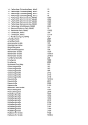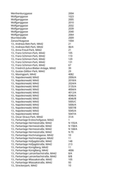 Werthenburggasse 2004 Wolfganggasse 1023 Wolfganggasse 2005 Wolfganggasse 2010 Wolfganggasse 2032 Wolfganggasse 2039 Wolfganggasse 2040 Wolfganggasse 2064 Wurmbstraße 2009 Zanaschkagasse 1004 13., Andreas-Rett-Park, MA42 21 13., Andreas-Rett-Park, MA42 46/A 13., Anna-Freud-Park, MA42 21 13., Franz-Schimon-Park, MA42 105 13., Franz-Schimon-Park, MA42 110 13., Franz-Schimon-Park, MA42 129 13., Franz-Schimon-Park, MA42 131 13., Franz-Schimon-Park, MA42 67 13., Friedrich-Julius-Bieber-Anlage, MA42 39 13., Gustav-Zelibor-Park, MA42 29 13., Maxingpark, MA42 4082 13., Napoleonwald, MA42 2006/A 13., Napoleonwald, MA42 2018/A 13., Napoleonwald, MA42 2024/A 13., Napoleonwald, MA42 3135/A 13., Napoleonwald, MA42 4004/A 13., Napoleonwald, MA42 4012/A 13., Napoleonwald, MA42 4046/A 13., Napoleonwald, MA42 4046/B 13., Napoleonwald, MA42 5005/C 13., Napoleonwald, MA42 5006/A 13., Napoleonwald, MA42 5007/B 13., Napoleonwald, MA42 5045/A 13., Napoleonwald, MA42 5047/A 13., Oscar-Straus-Park, MA42 31/A 13., Parkanlage Erzbischofgasse, MA42 1 13., Parkanlage Hermesstraße, MA42 N 155/A 13., Parkanlage Hermesstraße, MA42 N 158/A 13., Parkanlage Hermesstraße, MA42 N 168/A 13., Parkanlage Hermesstraße, MA42 N 70 13., Parkanlage Hochmaisgasse, MA42 10 13., Parkanlage Hochmaisgasse, MA42 11 13., Parkanlage Hofjagdstraße, MA42 148 13., Parkanlage Hofjagdstraße, MA42 213 13., Parkanlage Küniglberg, MA42 11 13., Parkanlage Küniglberg, MA42 4006 13., Parkanlage Lainzerbachstraße, MA42 8/A 13., Parkanlage Lainzerbachstraße, MA42 8/B 13., Parkanlage Wlassakstraße, MA42 105 13., Parkanlage Wlassakstraße, MA42 93 13., Streckerpark, MA42 10