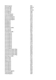 Melchartgasse 2001 Pacassistraße 2007/A Pacassistraße 2013 Pacassistraße 2016/A Preindlgasse 1002 Preindlgasse 1007 Premreinergasse 2014 Premreinergasse 2018 Ratmannsdorfgasse 1018 Ratmannsdorfgasse 2005 Ratmannsdorfgasse 2016 Riedelgasse 1010 Riedelgasse 1016 Riedelgasse 1037 Riedelgasse 2003 Riedelgasse 2006 Rohrbacherstraße 2016 Sauraugasse 2007 Sauraugasse 2032 Schönbachstraße 2027 Schrutkagasse 1001 Schrutkagasse 1002 Schrutkagasse 1003 Schrutkagasse 1004 Schrutkagasse 1005 Schrutkagasse 1006 Schrutkagasse 1008 Schrutkagasse 1015 Schrutkagasse 1019 Schrutkagasse 1042 Schrutkagasse 2010 Schrutkagasse 2028 Seckendorff-Gudent-Weg 2005 Seckendorff-Gudent-Weg 2007 Seckendorff-Gudent-Weg 2008 Seckendorff-Gudent-Weg 2009 Seckendorff-Gudent-Weg 2015 Speisinger Straße 1001 Spohrstraße 1017 Spohrstraße 1022 Spohrstraße 2005 Stadlergasse 1002 Stoesslgasse 1004 Stoesslgasse 2003 Stoesslgasse 2021 Stoesslgasse 2028 Stoesslgasse 2029 Stoesslgasse 2030 Stranzenberggasse 1005 Testarellogasse 1006 Testarellogasse 1007