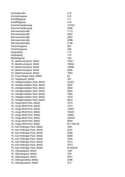 Scheidlstraße 218 Schindlergasse 210 Schöffelgasse 111 Schöffelgasse 219 Sommerhaidenweg 1074/C Sommerhaidenweg 2040 Sternwartestraße 1113 Sternwartestraße 2032 Sternwartestraße 2067 Sternwartestraße 2098 Sternwartestraße 2108 Teschnergasse 207 Teschnergasse 208 Utopiaweg 113 Utopiaweg 116 Weitlofgasse 104 19., Beethovenpark, MA42 10021 19., Beethovenpark, MA42 10044 19., Beethovenpark, MA42 10048 19., Beethovenpark, MA42 3006 19., Beethovenpark, MA42 7003 19., Franz-Mayer-Park, MA42 62 19., Hayekpark, MA42 3/A 19., Heiligenstädter Park, MA42 22023 19., Heiligenstädter Park, MA42 3032 19., Heiligenstädter Park, MA42 4002 19., Heiligenstädter Park, MA42 4003 19., Heiligenstädter Park, MA42 7003 19., Heiligenstädter Park, MA42 7014 19., Heiligenstädter Park, MA42 8023 19., Hugo-Wolf-Park, MA42 1015 19., Hugo-Wolf-Park, MA42 1015 19., Hugo-Wolf-Park, MA42 12003 19., Hugo-Wolf-Park, MA42 16020 19., Hugo-Wolf-Park, MA42 16043 19., Hugo-Wolf-Park, MA42 2063/A 19., Hugo-Wolf-Park, MA42 8030 19., Hugo-Wolf-Park, MA42 M 11001/N 19., Karl-Fellinger-Park, MA42 1001 19., Karl-Fellinger-Park, MA42 2031 19., Karl-Fellinger-Park, MA42 5030 19., Karl-Fellinger-Park, MA42 6009 19., Karl-Fellinger-Park, MA42 7009 19., Karl-Fellinger-Park, MA42 7012 19., Karl-Fellinger-Park, MA42 7013 19., Karl-Fellinger-Park, MA42 M 3050/A 19., Olympiapark, MA42 1001 19., Olympiapark, MA42 104 19., Olympiapark, MA42 5031 19., Ottingerwiese, MA42 2048 19., Ottingerwiese, MA42 212