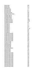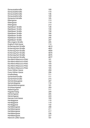 Markgraf-Gerold-Gasse 109 Markgraf-Gerold-Gasse 201 Maschlgasse 204 Meißauergasse 211 Melangasse 106 Melangasse 112 Melangasse 209 Melangasse 210 Mittelfeldweg 103 Mühlhäufelweg 203 Mühlwasserpromenade 117 Mühlwasserpromenade 118 Müllnermaisgasse 103 Murrstraße 106 Murrstraße 205 Natorpgasse 120 Neuhaufenstraße 101 Neuhaufenstraße 102 Neuhaufenstraße 103 Neuhaufenstraße 104 Neuhaufenstraße 105 Niedermoserstraße 106 Niklas-Eslarn-Straße 103 Orchisgasse 101 Ostbahnbegleitstraße 318 Ostbahnbegleitstraße 322 Pilotengasse 235 Plankenmaisstraße 219 Plankenmaisstraße 229 Polgarstraße 132 Polgarstraße 255 Polgarstraße 263 Polletstraße 101 Polletstraße 106 Polletstraße 121 Polletstraße 122 Polletstraße 126 Polletstraße 128 Polletstraße 227 Prandaugasse 202 Prandaugasse 203 Prandaugasse 204 Pröpstlgasse 204/A Raphael-Donner-Allee 134 Raphael-Donner-Allee 146 Raphael-Donner-Allee 203 Raphael-Donner-Allee 206 Raphael-Donner-Allee 208 Raphael-Donner-Allee 227 Raphael-Donner-Allee 263 Raphael-Donner-Allee 271