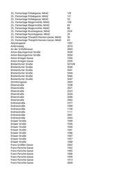 Trude-Fleischmann-Gasse 102 Trude-Fleischmann-Gasse 103 Trude-Fleischmann-Gasse 104 Ultzmanngasse 103 Ultzmanngasse 202 Waldheimstraße 210 Waldrebengasse 201 Wehrbrücklstraße 101 Weingartenallee 2088 Wiedgasse 104 Wintzingerodestraße 107 Wintzingerodestraße 121 Wintzingerodestraße 203 Wintzingerodestraße 209 Wulzendorfstraße 106 Wulzendorfstraße 109 Wulzendorfstraße 111 Wulzendorfstraße 121 Wulzendorfstraße 123 Wulzendorfstraße 136 Wulzendorfstraße 154 Wulzendorfstraße 157 Wulzendorfstraße 158 Wulzendorfstraße 204 Ziegelhofstraße 232 Ziegelhofstraße 233 Ziegelhofstraße 301 Ziegelhofstraße 303 Zillbauerplatz 101 Zillbauerplatz 110 Zillbauerplatz 112 Zschokkegasse 233 Zwerchäckerweg 204 23., Bruno-Morpurgo-Park, MA42 111 23., Bruno-Morpurgo-Park, MA42 130 23., Bruno-Morpurgo-Park, MA42 131 23., Bruno-Morpurgo-Park, MA42 131/A 23., Bruno-Morpurgo-Park, MA42 8 23., Dr.-Rudolf-Hatschek-Park, MA42 2 23., Druk-Yul-Park, MA42 23 23., Druk-Yul-Park, MA42 23/A 23., Fridtjof-Nansen-Park, MA42 3051 23., Fridtjof-Nansen-Park, MA42 3063 23., Fridtjof-Nansen-Park, MA42 6046 23., Fridtjof-Nansen-Park, MA42 6047 23., Fridtjof-Nansen-Park, MA42 7076 23., Friedrich-Khek-Anlage, MA42 7/A 23., Hans-Dunkl-Park, MA42 118 23., Hans-Dunkl-Park, MA42 21 23., Hans-Dunkl-Park, MA42 23 23., Hans-Dunkl-Park, MA42 29