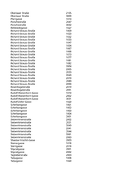 Oberlaaer Straße 2105 Oberlaaer Straße 3009 Pfarrgasse 1013 Porschestraße 2047 Porschestraße 3032 Reklewskigasse 1027 Richard-Strauss-Straße 1009 Richard-Strauss-Straße 1023 Richard-Strauss-Straße 1032 Richard-Strauss-Straße 1033 Richard-Strauss-Straße 1047 Richard-Strauss-Straße 1054 Richard-Strauss-Straße 1067 Richard-Strauss-Straße 1068 Richard-Strauss-Straße 1073 Richard-Strauss-Straße 1077 Richard-Strauss-Straße 1081 Richard-Strauss-Straße 1082 Richard-Strauss-Straße 2004 Richard-Strauss-Straße 2005 Richard-Strauss-Straße 2033 Richard-Strauss-Straße 2043 Richard-Strauss-Straße 2070 Richard-Strauss-Straße 2089 Richard-Strauss-Straße 2090 Rosenhügelstraße 2019 Rosenhügelstraße 2051 Rudolf-Waisenhorn-Gasse 1010 Rudolf-Waisenhorn-Gasse 2002 Rudolf-Waisenhorn-Gasse 3031 Rudolf-Zeller-Gasse 1020 Scherbangasse 1001 Scherbangasse 1002 Scherbangasse 1003 Scherbangasse 1004 Scherbangasse 2001 Siebenhirtenstraße 2002 Siebenhirtenstraße 2031 Siebenhirtenstraße 2040 Siebenhirtenstraße 2041 Siebenhirtenstraße 2044 Siebenhirtenstraße 2061 Siebenhirtenstraße 2063 Silvester-Früchtl-Gasse 2003 Steinergasse 1018 Sterngasse 2018 Stipcakgasse 2001 Stipcakgasse 2002 Taglieberstraße 2003 Talpagasse 1008 Talpagasse 1020