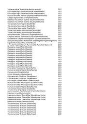 Tilia americana 'Nova' (Amerikanische Linde) 2021 Pinus nigra nigra (Österreichische Schwarzkiefer) 2021 Pinus nigra nigra (Österreichische Schwarzkiefer) 2021 Prunus serrulata 'Kanzan' (Japanische Blütenkirsche) 2021 Catalpa bignonioides (Trompetenbaum) 2021 Gleditsia triacanthos 'Skyline' (Säulengleditschie) 2021 Gleditsia triacanthos 'Skyline' (Säulengleditschie) 2021 Tilia cordata 'Greenspire' (Stadtlinde) 2021 Tilia cordata 'Greenspire' (Stadtlinde) 2021 Tilia cordata 'Greenspire' (Stadtlinde) 2021 Tamarix tetrandra (Viermännige Tamariske) 2021 Tamarix tetrandra (Viermännige Tamariske) 2021 Acer platanoides 'Globosum' (Kugelspitzahorn) 2021 Carpinus betulus 'Columnaris' (Pyramidenhainbuche) 2021 Liriodendron tulipifera 'Fastigiatum' (Säulentulpenbaum) 2021 Acer pseudoplatanus 'Rotterdam' (Breitkegelförmiger Bergahorn) 2021 Liquidambar styraciflua (Amberbaum) 2021 Aesculus hippocastanum 'Pyramidalis' (Pyramidenkastanie) 2021 Elaeagnus angustifolia (Ölweide) 2021 Elaeagnus angustifolia (Ölweide) 2021 Elaeagnus angustifolia (Ölweide) 2021 Elaeagnus angustifolia (Ölweide) 2021 Elaeagnus angustifolia (Ölweide) 2021 Elaeagnus angustifolia (Ölweide) 2021 Elaeagnus angustifolia (Ölweide) 2021 Elaeagnus angustifolia (Ölweide) 2021 Elaeagnus angustifolia (Ölweide) 2021 Elaeagnus angustifolia (Ölweide) 2021 Picea abies 'Cupressina' (Säulenfichte) 2021 Prunus cerasifera 'Nigra' (Blutpflaume) 2021 Prunus avium (Vogelkirsche) 2021 Cercis siliquastrum (Judasbaum) 2021 Celtis australis (Südlicher Zürgelbaum) 2021 Celtis australis (Südlicher Zürgelbaum) 2021 Pinus nigra (Schwarzkiefer, Schwarzföhre) 2021 Prunus serrulata 'Amanogawa' (Säulenkirsche) 2021 Prunus serrulata 'Amanogawa' (Säulenkirsche) 2021 Prunus cerasifera 'Nigra' (Blutpflaume) 2021 Tilia cordata 'Greenspire' (Stadtlinde) 2021 Acer truncatum 'Pacific Sunset' (Pazifischer Ahorn) 2021 Fraxinus ornus (Blumenesche) 2021 Fraxinus excelsior 'Diversifolia' (Einblättrige Esche) 2021 Fraxinus excelsior 'Diversifolia' (Einblättrige Esche) 2021 Fraxinus excelsior 'Diversifolia' (Einblättrige Esche) 2021 Fraxinus excelsior (Gemeine Esche) 2021 Tilia tomentosa 'Brabant' (Silberlinde) 2021 Tilia tomentosa 'Brabant' (Silberlinde) 2021 Tilia tomentosa 'Brabant' (Silberlinde) 2021 Tilia tomentosa 'Brabant' (Silberlinde) 2021 Tilia tomentosa 'Brabant' (Silberlinde) 2021 Tilia tomentosa 'Brabant' (Silberlinde) 2021