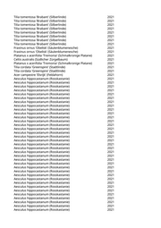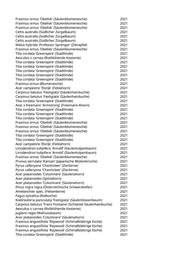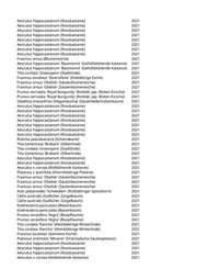 Acer campestre (Feldahorn) 2021 Aesculus x carnea (Rotblühende Kastanie) 2021 Pinus sylvestris (Gemeine Kiefer) 2021 Acer platanoides 'Eurostar' (Spitzahorn) 2021 Fagus sylvatica 'Rohan Obelisk' (Säulenblutbuche) 2021 Acer platanoides 'Eurostar' (Spitzahorn) 2021 Robinia pseudoacacia (Scheinakazie) 2021 Acer campestre 'Elsrijk' (Feldahorn) 2021 Gleditsia triacanthos (Lederhülsenbaum) 2021 Acer campestre (Feldahorn) 2021 Acer campestre 'Elsrijk' (Feldahorn) 2021 Ginkgo biloba 'Autumn Gold' (Fächerblattbaum) 2021 Salix alba (Silberweide) 2021 Pinus sylvestris (Gemeine Kiefer) 2021 Pinus sylvestris (Gemeine Kiefer) 2021 Sophora japonica (Schnurbaum) 2021 Acer campestre 'Elsrijk' (Feldahorn) 2021 Acer platanoides (Spitzahorn) 2021 Sophora japonica (Schnurbaum) 2021 Quercus rubra (Roteiche) 2021 Taxus baccata (Heimische Eibe) 2021 Alnus incana (Grauerle) 2021 Acer tataricum (Feuerahorn) 2021 Ginkgo biloba 'Autumn Gold' (Fächerblattbaum) 2021 Juglans regia (Walnussbaum) 2021 Liquidambar styraciflua (Amberbaum) 2021 Morus alba 'Pyramidalis' (Pyramidenmaulbeere) 2021 Pinus nigra nigra (Österreichische Schwarzkiefer) 2021 Fraxinus angustifolia (Schmalblättrige Esche) 2021 Acer platanoides (Spitzahorn) 2021 Acer platanoides (Spitzahorn) 2021 Acer pseudoplatanus (Bergahorn) 2021 Platanus x acerifolia (Ahornblättrige Platane) 2021 Robinia pseudoacacia (Scheinakazie) 2021 Aesculus hippocastanum (Rosskastanie) 2021 Acer platanoides (Spitzahorn) 2021 Fraxinus excelsior (Gemeine Esche) 2021 Acer pseudoplatanus (Bergahorn) 2021 Acer campestre (Feldahorn) 2021 Acer pseudoplatanus (Bergahorn) 2021 Acer platanoides (Spitzahorn) 2021 Acer platanoides (Spitzahorn) 2021 Acer negundo (Eschenahorn) 2021 Acer negundo (Eschenahorn) 2021 Aesculus hippocastanum (Rosskastanie) 2021 Acer pseudoplatanus (Bergahorn) 2021 Ulmus 'Regal' (Resista Ulme) 2021 Quercus petraea (Traubeneiche) 2021 Tilia cordata (Winterlinde) 2021 Betula pendula (Weißbirke) 2021 Pinus nigra nigra (Österreichische Schwarzkiefer) 2021