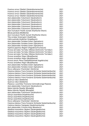 Acer campestre 'Elsrijk' (Feldahorn) 2021 Carpinus betulus 'Frans Fontaine' (Schlanke Säulenhainbuche) 2021 Pyrus calleryana 'Chanticleer' (Zierbirne) 2021 Sophora japonica (Schnurbaum) 2021 Acer campestre 'Elsrijk' (Feldahorn) 2021 Aesculus x carnea 'Briotii' (Scharlachkastanie) 2021 Aesculus hippocastanum 'Baumannii' (Gefülltblühende Kastanie) 2021 Tilia tomentosa 'Brabant' (Silberlinde) 2021 Tilia tomentosa 'Brabant' (Silberlinde) 2021 Tilia tomentosa 'Brabant' (Silberlinde) 2021 Tilia tomentosa 'Brabant' (Silberlinde) 2021 Tilia tomentosa 'Brabant' (Silberlinde) 2021 Tilia tomentosa 'Brabant' (Silberlinde) 2021 Tilia tomentosa 'Brabant' (Silberlinde) 2021 Fraxinus ornus 'Obelisk' (Säulenblumenesche) 2021 Fraxinus ornus 'Obelisk' (Säulenblumenesche) 2021 Celtis australis (Südlicher Zürgelbaum) 2021 Gleditsia triacanthos 'Skyline' (Säulengleditschie) 2021 Gleditsia triacanthos 'Skyline' (Säulengleditschie) 2021 Gleditsia triacanthos 'Skyline' (Säulengleditschie) 2021 Gleditsia triacanthos 'Skyline' (Säulengleditschie) 2021 Pyrus calleryana 'Chanticleer' (Zierbirne) 2021 Pyrus calleryana 'Chanticleer' (Zierbirne) 2021 Tilia x europaea 'Pallida' (Kaiserlinde) 2021 Celtis australis (Südlicher Zürgelbaum) 2021 Celtis australis (Südlicher Zürgelbaum) 2021 Acer platanoides 'Columnare' (Säulenahorn) 2021 Acer platanoides 'Farlakes Green' (Spitzahorn) 2021 Acer platanoides 'Farlakes Green' (Spitzahorn) 2021 Acer platanoides 'Farlakes Green' (Spitzahorn) 2021 Tilia x europaea 'Pallida' (Kaiserlinde) 2021 Tilia x europaea 'Pallida' (Kaiserlinde) 2021 Tilia x europaea 'Pallida' (Kaiserlinde) 2021 Tilia x europaea 'Pallida' (Kaiserlinde) 2021 Acer campestre 'Elsrijk' (Feldahorn) 2021 Acer campestre 'Elsrijk' (Feldahorn) 2021 Tilia x europaea 'Pallida' (Kaiserlinde) 2021 Tilia x europaea 'Pallida' (Kaiserlinde) 2021 Acer platanoides 'Columnare' (Säulenahorn) 2021 Celtis australis (Südlicher Zürgelbaum) 2021 Celtis australis (Südlicher Zürgelbaum) 2021 Celtis australis (Südlicher Zürgelbaum) 2021 Celtis australis (Südlicher Zürgelbaum) 2021 Celtis australis (Südlicher Zürgelbaum) 2021 Celtis australis (Südlicher Zürgelbaum) 2021 Celtis australis (Südlicher Zürgelbaum) 2021 Celtis australis (Südlicher Zürgelbaum) 2021 Celtis australis (Südlicher Zürgelbaum) 2021 Celtis australis (Südlicher Zürgelbaum) 2021 Celtis australis (Südlicher Zürgelbaum) 2021 Acer platanoides 'Columnare' (Säulenahorn) 2021