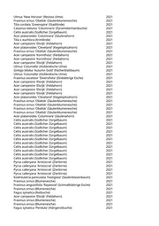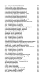 Ulmus 'New Horizon' (Resista Ulme) 2021 Fraxinus ornus 'Obelisk' (Säulenblumenesche) 2021 Tilia cordata 'Greenspire' (Stadtlinde) 2021 Carpinus betulus 'Columnaris' (Pyramidenhainbuche) 2021 Celtis australis (Südlicher Zürgelbaum) 2021 Acer platanoides 'Columnare' (Säulenahorn) 2021 Tilia x euchlora (Krimlinde) 2021 Acer campestre 'Elsrijk' (Feldahorn) 2021 Acer platanoides 'Cleveland' (Kegelspitzahorn) 2021 Fraxinus ornus 'Obelisk' (Säulenblumenesche) 2021 Acer campestre 'Korinthosz' (Feldahorn) 2021 Acer campestre 'Korinthosz' (Feldahorn) 2021 Acer campestre 'Elsrijk' (Feldahorn) 2021 Ulmus 'Columella' (Holländische Ulme) 2021 Ginkgo biloba 'Autumn Gold' (Fächerblattbaum) 2021 Ulmus 'Columella' (Holländische Ulme) 2021 Fraxinus excelsior 'Diversifolia' (Einblättrige Esche) 2021 Acer campestre 'Elsrijk' (Feldahorn) 2021 Acer campestre 'Elsrijk' (Feldahorn) 2021 Acer campestre 'Elsrijk' (Feldahorn) 2021 Acer campestre 'Elsrijk' (Feldahorn) 2021 Acer platanoides 'Cleveland' (Kegelspitzahorn) 2021 Fraxinus ornus 'Obelisk' (Säulenblumenesche) 2021 Fraxinus ornus 'Obelisk' (Säulenblumenesche) 2021 Fraxinus ornus 'Obelisk' (Säulenblumenesche) 2021 Fraxinus ornus 'Obelisk' (Säulenblumenesche) 2021 Acer platanoides 'Columnare' (Säulenahorn) 2021 Celtis australis (Südlicher Zürgelbaum) 2021 Celtis australis (Südlicher Zürgelbaum) 2021 Celtis australis (Südlicher Zürgelbaum) 2021 Celtis australis (Südlicher Zürgelbaum) 2021 Celtis australis (Südlicher Zürgelbaum) 2021 Celtis australis (Südlicher Zürgelbaum) 2021 Celtis australis (Südlicher Zürgelbaum) 2021 Celtis australis (Südlicher Zürgelbaum) 2021 Celtis australis (Südlicher Zürgelbaum) 2021 Celtis australis (Südlicher Zürgelbaum) 2021 Celtis australis (Südlicher Zürgelbaum) 2021 Pyrus calleryana 'Aristocrat' (Zierbirne) 2021 Pyrus calleryana 'Aristocrat' (Zierbirne) 2021 Pyrus calleryana 'Aristocrat' (Zierbirne) 2021 Pyrus calleryana 'Aristocrat' (Zierbirne) 2021 Koelreuteria paniculata 'Fastigiata' (Säulenblasenbaum) 2021 Fraxinus ornus (Blumenesche) 2021 Fraxinus angustifolia 'Raywood' (Schmalblättrige Esche) 2021 Fraxinus ornus (Blumenesche) 2021 Fagus sylvatica (Rotbuche) 2021 Acer campestre 'Elsrijk' (Feldahorn) 2021 Fraxinus ornus (Blumenesche) 2021 Fraxinus ornus (Blumenesche) 2021 Fagus sylvatica 'Pendula' (Hängerotbuche) 2021