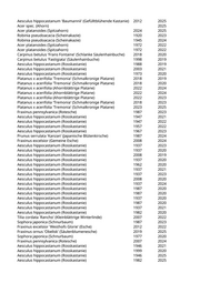 Aesculus hippocastanum 'Baumannii' (Gefülltblühende Kastanie) 2012 2025 Acer spec. (Ahorn) 2025 Acer platanoides (Spitzahorn) 2024 2025 Robinia pseudoacacia (Scheinakazie) 1920 2023 Robinia pseudoacacia (Scheinakazie) 1945 2024 Acer platanoides (Spitzahorn) 1972 2022 Acer platanoides (Spitzahorn) 1972 2022 Carpinus betulus 'Frans Fontaine' (Schlanke Säulenhainbuche) 2018 2020 Carpinus betulus 'Fastigiata' (Säulenhainbuche) 1998 2019 Aesculus hippocastanum (Rosskastanie) 1988 2019 Aesculus hippocastanum (Rosskastanie) 2003 2021 Aesculus hippocastanum (Rosskastanie) 1973 2020 Platanus x acerifolia 'Tremonia' (Schmalkronige Platane) 2018 2019 Platanus x acerifolia 'Tremonia' (Schmalkronige Platane) 2018 2020 Platanus x acerifolia (Ahornblättrige Platane) 2022 2024 Platanus x acerifolia (Ahornblättrige Platane) 2022 2024 Platanus x acerifolia (Ahornblättrige Platane) 2022 2023 Platanus x acerifolia 'Tremonia' (Schmalkronige Platane) 2018 2023 Platanus x acerifolia 'Tremonia' (Schmalkronige Platane) 2023 2025 Fraxinus pennsylvanica (Rotesche) 1987 2023 Aesculus hippocastanum (Rosskastanie) 1947 2021 Aesculus hippocastanum (Rosskastanie) 1947 2022 Aesculus hippocastanum (Rosskastanie) 1957 2022 Aesculus hippocastanum (Rosskastanie) 1967 2023 Prunus serrulata 'Kanzan' (Japanische Blütenkirsche) 1987 2024 Fraxinus excelsior (Gemeine Esche) 2008 2024 Aesculus hippocastanum (Rosskastanie) 1937 2023 Aesculus hippocastanum (Rosskastanie) 1937 2020 Aesculus hippocastanum (Rosskastanie) 2008 2019 Aesculus hippocastanum (Rosskastanie) 1937 2020 Aesculus hippocastanum (Rosskastanie) 1962 2020 Aesculus hippocastanum (Rosskastanie) 1937 2021 Aesculus hippocastanum (Rosskastanie) 1937 2023 Aesculus hippocastanum (Rosskastanie) 2008 2020 Aesculus hippocastanum (Rosskastanie) 1937 2024 Aesculus hippocastanum (Rosskastanie) 1987 2020 Aesculus hippocastanum (Rosskastanie) 1987 2020 Aesculus hippocastanum (Rosskastanie) 1937 2020 Aesculus hippocastanum (Rosskastanie) 1987 2020 Aesculus hippocastanum (Rosskastanie) 1937 2021 Aesculus hippocastanum (Rosskastanie) 1982 2020 Tilia cordata 'Rancho' (Kleinblättrige Winterlinde) 2007 2022 Sophora japonica (Schnurbaum) 1987 2023 Fraxinus excelsior 'Westhofs Glorie' (Esche) 2012 2022 Fraxinus ornus 'Obelisk' (Säulenblumenesche) 2019 2025 Sophora japonica (Schnurbaum) 1977 2020 Fraxinus pennsylvanica (Rotesche) 2007 2024 Aesculus hippocastanum (Rosskastanie) 1946 2021 Aesculus hippocastanum (Rosskastanie) 1999 2020 Aesculus hippocastanum (Rosskastanie) 1946 2025 Aesculus hippocastanum (Rosskastanie) 1982 2025