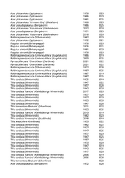 Carpinus betulus (Hainbuche) 2018 2019 Malus hybride 'John Downie' (Zierapfel) 2017 2019 Pinus nigra nigra (Österreichische Schwarzkiefer) 1976 2025 Robinia x margaretta 'Casque Rouge' (Scheinakazie Casque Rouge) 1999 2025 Aesculus hippocastanum (Rosskastanie) 1931 2022 Aesculus x carnea (Rotblühende Kastanie) 1959 2022 Ailanthus altissima (Götterbaum) 1954 2024 Ailanthus altissima (Götterbaum) 1958 2024 Ailanthus altissima (Götterbaum) 1955 2024 Prunus spec. (Kirsche) 2022 2024 Acer platanoides (Spitzahorn) 1971 2024 Amelanchier spec. (Felsenbirne) 2022 2023 Ailanthus altissima (Götterbaum) 1965 2023 Ailanthus altissima (Götterbaum) 1966 2023 Prunus serrulata 'Amanogawa' (Säulenkirsche) 2012 2025 Robinia pseudoacacia (Scheinakazie) 1939 2023 Carpinus betulus 'Frans Fontaine' (Schlanke Säulenhainbuche) 2017 2019 Prunus cerasifera (Kirschpflaume) 2000 2023 Malus spec. (Apfelbaum) 2010 2021 Populus nigra 'Italica' (Pyramidenpappel) 1925 2024 Carpinus betulus 'Fastigiata' (Säulenhainbuche) 2019 2020 Carpinus betulus 'Frans Fontaine' (Schlanke Säulenhainbuche) 2020 2022 Pinus nigra (Schwarzkiefer, Schwarzföhre) 1982 2024 Populus nigra 'Italica' (Pyramidenpappel) 1965 2020 Carpinus betulus 'Frans Fontaine' (Schlanke Säulenhainbuche) 2022 2023 Prunus cerasifera (Kirschpflaume) 1976 2025 Populus nigra 'Italica' (Pyramidenpappel) 1939 2020 Pinus nigra (Schwarzkiefer, Schwarzföhre) 2001 2023 Pinus nigra (Schwarzkiefer, Schwarzföhre) 1984 2023 Ulmus glabra (Bergulme) 2008 2022 Aesculus x carnea 'Briotii' (Scharlachkastanie) 2018 2019 Ulmus glabra (Bergulme) 2009 2025 Acer pseudoplatanus (Bergahorn) 1951 2020 Crataegus spec. (Dorn) 2002 2025 Crataegus spec. (Dorn) 1997 2023 Ulmus glabra (Bergulme) 1960 2023 Populus nigra 'Italica' (Pyramidenpappel) 1910 2023 Populus nigra 'Italica' (Pyramidenpappel) 1908 2023 Larix decidua (Europäische Lärche) 1985 2023 Aesculus hippocastanum (Rosskastanie) 1921 2024 Aesculus x carnea (Rotblühende Kastanie) 1963 2025 Acer pseudoplatanus (Bergahorn) 1917 2024 Acer pseudoplatanus (Bergahorn) 1927 2025 Prunus serrulata 'Kanzan' (Japanische Blütenkirsche) 2004 2022 Acer pseudoplatanus (Bergahorn) 1941 2025 Prunus cerasifera (Kirschpflaume) 1968 2022 Acer negundo (Eschenahorn) 1966 2020 Tilia cordata (Winterlinde) 1945 2025 Acer tataricum (Feuerahorn) 1977 2019 Acer platanoides (Spitzahorn) 1928 2023 Acer platanoides (Spitzahorn) 1934 2024