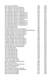 Betula pendula (Weißbirke) 1957 2024 Pyrus calleryana 'Aristocrat' (Zierbirne) 2009 2024 Pyrus calleryana 'Chanticleer' (Zierbirne) 2014 2024 Pyrus calleryana 'Chanticleer' (Zierbirne) 2014 2023 Pyrus calleryana 'Chanticleer' (Zierbirne) 2014 2024 Acer platanoides 'Globosum' (Kugelspitzahorn) 1947 2021 Acer platanoides 'Globosum' (Kugelspitzahorn) 1957 2021 Acer platanoides 'Globosum' (Kugelspitzahorn) 1957 2019 Acer platanoides 'Globosum' (Kugelspitzahorn) 1947 2021 Acer platanoides 'Globosum' (Kugelspitzahorn) 1967 2019 Pyrus calleryana 'Chanticleer' (Zierbirne) 2014 2024 Acer platanoides 'Globosum' (Kugelspitzahorn) 1977 2023 Acer platanoides 'Globosum' (Kugelspitzahorn) 1947 2023 Acer platanoides 'Globosum' (Kugelspitzahorn) 1957 2022 Acer platanoides 'Globosum' (Kugelspitzahorn) 1947 2019 Tilia cordata (Winterlinde) 1957 2025 Tilia cordata (Winterlinde) 1886 2019 Crataegus laevigata 'Pauls Scarlet' (Rotdorn) 1967 2019 Carpinus betulus 'Frans Fontaine' (Schlanke Säulenhainbuche) 2009 2019 Crataegus laevigata 'Pauls Scarlet' (Rotdorn) 1967 2019 Crataegus laevigata 'Pauls Scarlet' (Rotdorn) 1990 2019 Crataegus laevigata 'Pauls Scarlet' (Rotdorn) 1977 2019 Aesculus hippocastanum (Rosskastanie) 1940 2021 Aesculus hippocastanum (Rosskastanie) 1873 2024 Crataegus laevigata 'Pauls Scarlet' (Rotdorn) 2000 2019 Crataegus laevigata 'Pauls Scarlet' (Rotdorn) 2000 2022 Crataegus laevigata 'Pauls Scarlet' (Rotdorn) 1967 2019 Crataegus laevigata 'Pauls Scarlet' (Rotdorn) 1957 2025 Crataegus laevigata 'Pauls Scarlet' (Rotdorn) 1967 2019 Pyrus calleryana 'Chanticleer' (Zierbirne) 2016 2020 Aesculus hippocastanum (Rosskastanie) 1940 2024 Salix alba (Silberweide) 2019 2025 Tilia cordata (Winterlinde) 1852 2021 Tilia cordata (Winterlinde) 1935 2025 Tilia cordata (Winterlinde) 1940 2023 Tilia cordata (Winterlinde) 1940 2024 Tilia cordata (Winterlinde) 1935 2023 Tilia cordata (Winterlinde) 1940 2025 Tilia cordata (Winterlinde) 1940 2022 Corylus colurna (Baumhasel) 1977 2024 Corylus colurna (Baumhasel) 1957 2021 Aesculus hippocastanum (Rosskastanie) 1900 2025 Malus spec. (Apfelbaum) 2007 2021 Pyrus calleryana 'Chanticleer' (Zierbirne) 2022 2024 Malus toringo (Toringo-Apfel) 2016 2023 Malus spec. (Apfelbaum) 2011 2022 Pyrus calleryana 'Chanticleer' (Zierbirne) 2023 2024 Sorbus intermedia (Schwedische Mehlbeere) 1977 2019 Malus tschonoskii (Zierapfel) 1977 2022 Malus tschonoskii (Zierapfel) 2007 2023 Malus tschonoskii (Zierapfel) 1977 2025