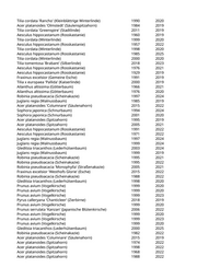Tilia cordata 'Rancho' (Kleinblättrige Winterlinde) 1990 2020 Acer platanoides 'Olmstedt' (Säulenspitzahorn) 1984 2019 Tilia cordata 'Greenspire' (Stadtlinde) 2011 2019 Aesculus hippocastanum (Rosskastanie) 1960 2019 Tilia cordata (Winterlinde) 1999 2020 Aesculus hippocastanum (Rosskastanie) 1957 2022 Tilia cordata (Winterlinde) 1998 2020 Aesculus hippocastanum (Rosskastanie) 1985 2025 Tilia cordata (Winterlinde) 2000 2020 Tilia tomentosa 'Brabant' (Silberlinde) 2018 2023 Aesculus hippocastanum (Rosskastanie) 1976 2021 Aesculus hippocastanum (Rosskastanie) 1929 2019 Fraxinus excelsior (Gemeine Esche) 1991 2019 Tilia x europaea 'Pallida' (Kaiserlinde) 2000 2019 Ailanthus altissima (Götterbaum) 1966 2021 Ailanthus altissima (Götterbaum) 1976 2020 Robinia pseudoacacia (Scheinakazie) 1997 2024 Juglans regia (Walnussbaum) 1985 2019 Acer platanoides 'Columnare' (Säulenahorn) 2015 2022 Sophora japonica (Schnurbaum) 1994 2024 Sophora japonica (Schnurbaum) 2001 2020 Acer platanoides (Spitzahorn) 1995 2019 Acer platanoides (Spitzahorn) 2005 2021 Aesculus hippocastanum (Rosskastanie) 1991 2022 Aesculus hippocastanum (Rosskastanie) 1971 2022 Juglans regia (Walnussbaum) 1997 2024 Juglans regia (Walnussbaum) 1999 2024 Gleditsia triacanthos (Lederhülsenbaum) 2003 2024 Juglans regia (Walnussbaum) 1999 2019 Robinia pseudoacacia (Scheinakazie) 1995 2021 Robinia pseudoacacia (Scheinakazie) 1995 2022 Robinia pseudoacacia 'Monophylla' (Straßenakazie) 2005 2021 Fraxinus excelsior 'Westhofs Glorie' (Esche) 2015 2022 Robinia pseudoacacia (Scheinakazie) 1988 2022 Gleditsia triacanthos (Lederhülsenbaum) 1998 2020 Prunus avium (Vogelkirsche) 1999 2020 Prunus avium (Vogelkirsche) 1999 2020 Prunus avium (Vogelkirsche) 1999 2023 Pyrus calleryana 'Chanticleer' (Zierbirne) 2018 2019 Prunus avium (Vogelkirsche) 1999 2020 Prunus serrulata 'Kanzan' (Japanische Blütenkirsche) 2006 2022 Prunus avium (Vogelkirsche) 1999 2020 Prunus avium (Vogelkirsche) 1999 2023 Prunus avium (Vogelkirsche) 1999 2020 Gleditsia triacanthos (Lederhülsenbaum) 2000 2025 Robinia pseudoacacia (Scheinakazie) 1982 2022 Acer platanoides 'Columnare' (Säulenahorn) 2015 2019 Acer platanoides (Spitzahorn) 1974 2022 Acer platanoides (Spitzahorn) 1998 2022 Acer platanoides (Spitzahorn) 1968 2022 Acer platanoides (Spitzahorn) 1988 2022