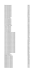 Steiningergasse 1003 Steiningergasse 1018 Steiningergasse 1018 Steiningergasse 1023 Steiningergasse 1025 Steiningergasse 1025 Steiningergasse 2007 Steiningergasse 2008 Steiningergasse 2013 Steiningergasse 2015 Steinweisweg 1009 Stranitzkygasse 1002 Stranitzkygasse 1003 Stranitzkygasse 1006 Stranitzkygasse 1015 Stranitzkygasse 1022 Susi-Weigel-Weg 2006 Tanbruckgasse 1002 Tanbruckgasse 1003 Tanbruckgasse 1005 Tscherttegasse 1004 Tscherttegasse 1005 Unter-Meidlinger Straße 1048 Unter-Meidlinger Straße 1050 Unter-Meidlinger Straße 1053 Unter-Meidlinger Straße 1061 Unter-Meidlinger Straße 1068 Unter-Meidlinger Straße 1106 Unter-Meidlinger Straße 2029 Unter-Meidlinger Straße 2038 Unter-Meidlinger Straße 2041 Unter-Meidlinger Straße 2043 Unter-Meidlinger Straße 2051 Unter-Meidlinger Straße 2057 Unter-Meidlinger Straße 2062 Unter-Meidlinger Straße 2063 Unter-Meidlinger Straße 2067 Unter-Meidlinger Straße 2081 Unter-Meidlinger Straße 2093 Vivenotgasse 2001 Wagenseilgasse 2004 Weißenthurngasse 1004 Weißenthurngasse 1006 Weißenthurngasse 1007 Weißenthurngasse 1008 Weißenthurngasse 1008 Weißenthurngasse 1009 Weißenthurngasse 1009 Weißenthurngasse 1010 Weißenthurngasse 1013 Weißenthurngasse 1016