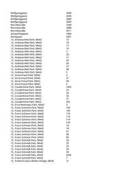 13., Friedrich-Julius-Bieber-Anlage, MA42 39 13., Friedrich-Julius-Bieber-Anlage, MA42 50 13., Friedrich-Julius-Bieber-Anlage, MA42 51 13., Friedrich-Julius-Bieber-Anlage, MA42 52 13., Friedrich-Julius-Bieber-Anlage, MA42 61 13., Friedrich-Julius-Bieber-Anlage, MA42 61 13., Gustav-Zelibor-Park, MA42 28 13., Gustav-Zelibor-Park, MA42 29 13., Hackinger-Schloß-Park, MA42 104 13., Hackinger-Schloß-Park, MA42 144 13., Hackinger-Schloß-Park, MA42 237 13., Hackinger-Schloß-Park, MA42 240 13., Hackinger-Schloß-Park, MA42 242 13., Hackinger-Schloß-Park, MA42 301 13., Hackinger-Schloß-Park, MA42 342 13., Hackinger-Schloß-Park, MA42 343 13., Hans-Moser-Park, MA42 10 13., Hans-Moser-Park, MA42 11 13., Hans-Moser-Park, MA42 15 13., Hans-Moser-Park, MA42 16 13., Hans-Moser-Park, MA42 3 13., Hügelpark, MA42 30 13., Hugo-Pepper-Park, MA42 100/A 13., Hugo-Pepper-Park, MA42 111/A 13., Hugo-Pepper-Park, MA42 126 13., Hugo-Pepper-Park, MA42 55 13., Hugo-Pepper-Park, MA42 6 13., Hugo-Pepper-Park, MA42 93/C 13., Katharina-Schratt-Park, MA42 17 13., Katharina-Schratt-Park, MA42 2 13., Kinderspielplatz Fasangarten, MA42 11 13., Kinderspielplatz Fasangarten, MA42 3 13., Kinderspielplatz Fasangarten, MA42 8 13., Maxingpark, MA42 1036 13., Maxingpark, MA42 1043 13., Maxingpark, MA42 1051 13., Maxingpark, MA42 2032 13., Maxingpark, MA42 2033 13., Maxingpark, MA42 3004 13., Maxingpark, MA42 3005 13., Maxingpark, MA42 3032/A 13., Maxingpark, MA42 3034 13., Maxingpark, MA42 3076 13., Maxingpark, MA42 3082 13., Maxingpark, MA42 4037 13., Maxingpark, MA42 4039 13., Maxingpark, MA42 4047 13., Maxingpark, MA42 4049 13., Maxingpark, MA42 4057 13., Maxingpark, MA42 4061 13., Maxingpark, MA42 4080