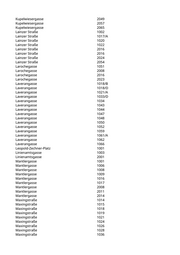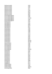Gaßmannstraße 1054 Gaßmannstraße 1063 Gaßmannstraße 1071 Gaßmannstraße 1071 Gaßmannstraße 1078 Gaßmannstraße 2014 Gaßmannstraße 2080 Gaßmannstraße 3022 Gemeindeberggasse 1002 Gemeindeberggasse 1006 Gemeindeberggasse 1012/A Gemeindeberggasse 1030 Gemeindeberggasse 1031 Geylinggasse 1007 Geylinggasse 1022 Geylinggasse 2004 Geylinggasse 2018 Geylinggasse 2021 Ghelengasse 1004 Ghelengasse 1005 Ghelengasse 1008 Ghelengasse 1009 Ghelengasse 1010 Ghelengasse 1019 Ghelengasse 1025 Ghelengasse 2002 Ghelengasse 2006 Ghelengasse 2010 Ghelengasse 2025/A Ghelengasse 3010/A Glasauergasse 1003 Glasauergasse 1005 Gloriettegasse 1002 Gloriettegasse 1055 Gloriettegasse 2016 Gloriettegasse 2032/D Gobergasse 1022 Gobergasse 2007 Gobergasse 2013 Gobergasse 2014 Gobergasse 2026 Gobergasse 2037 Gobergasse 2046 Gobergasse 2047 Gobergasse 2048 Gogolgasse 2012 Gogolgasse 2014 Goldmarkplatz 1019 Goldmarkplatz 1020 Goldmarkplatz 2007/A Grünbergstraße 3006