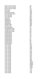 Johann-Schorsch-Gasse 206 Johann-Schorsch-Gasse 207 Johann-Schorsch-Gasse 213 Johnstraße 1007 Johnstraße 1008 Josef-Prokop-Straße 1002 Josef-Weinheber-Platz 1004 Karl-Toldt-Weg 1001 Karl-Toldt-Weg 2001 Kefergasse 2001 Kefergasse 2005 Keißlergasse 2000 Keißlergasse 2047 Keißlergasse 2058 Kendlerstraße 1000 Kendlerstraße 2001 Kienmayergasse 101 Knödelhüttenstraße 103 Knödelhüttenstraße 124 Knödelhüttenstraße 208 Kuefsteingasse 104 Kuefsteingasse 107 Kuefsteingasse 108 Kuefsteingasse 132 Kuefsteingasse 137 Kuefsteingasse 201 Kuefsteingasse 205 Kuefsteingasse 207 Kuefsteingasse 229 Linzer Straße 1001 Linzer Straße 1002 Linzer Straße 1004 Linzer Straße 1006 Linzer Straße 1015 Linzer Straße 1020 Linzer Straße 1028 Linzer Straße 1029 Linzer Straße 1041 Linzer Straße 1047 Linzer Straße 1052 Linzer Straße 1064 Linzer Straße 1083 Linzer Straße 1089/A Linzer Straße 1089/B Linzer Straße 1089/D Linzer Straße 1089/I Linzer Straße 1089/L Linzer Straße 1122 Linzer Straße 1123 Linzer Straße 1128 Linzer Straße 1133