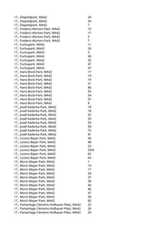17., Diepoldpark, MA42 34 17., Diepoldpark, MA42 34 17., Diepoldpark, MA42 7 17., Frederic-Morton-Park, MA42 15 17., Frederic-Morton-Park, MA42 17 17., Frederic-Morton-Park, MA42 5 17., Frederic-Morton-Park, MA42 7 17., Fuchupark, MA42 11 17., Fuchupark, MA42 24 17., Fuchupark, MA42 3 17., Fuchupark, MA42 30 17., Fuchupark, MA42 32 17., Fuchupark, MA42 47 17., Fuchupark, MA42 47 17., Hans-Bock-Park, MA42 17 17., Hans-Bock-Park, MA42 19 17., Hans-Bock-Park, MA42 19 17., Hans-Bock-Park, MA42 31 17., Hans-Bock-Park, MA42 46 17., Hans-Bock-Park, MA42 50 17., Hans-Bock-Park, MA42 54 17., Hans-Bock-Park, MA42 57 17., Hans-Bock-Park, MA42 8 17., Josef-Kaderka-Park, MA42 18 17., Josef-Kaderka-Park, MA42 18 17., Josef-Kaderka-Park, MA42 32 17., Josef-Kaderka-Park, MA42 59 17., Josef-Kaderka-Park, MA42 59 17., Josef-Kaderka-Park, MA42 59 17., Josef-Kaderka-Park, MA42 73 17., Josef-Kaderka-Park, MA42 81 17., Lorenz-Bayer-Park, MA42 43 17., Lorenz-Bayer-Park, MA42 48 17., Lorenz-Bayer-Park, MA42 53 17., Lorenz-Bayer-Park, MA42 53/A 17., Lorenz-Bayer-Park, MA42 62 17., Lorenz-Bayer-Park, MA42 64 17., Moriz-Mayer-Park, MA42 1 17., Moriz-Mayer-Park, MA42 10 17., Moriz-Mayer-Park, MA42 17 17., Moriz-Mayer-Park, MA42 28 17., Moriz-Mayer-Park, MA42 37 17., Moriz-Mayer-Park, MA42 38 17., Moriz-Mayer-Park, MA42 43 17., Moriz-Mayer-Park, MA42 46 17., Moriz-Mayer-Park, MA42 47 17., Moriz-Mayer-Park, MA42 58 17., Moriz-Mayer-Park, MA42 60 17., Parkanlage Clemens-Hofbauer-Platz, MA42 25 17., Parkanlage Clemens-Hofbauer-Platz, MA42 26 17., Parkanlage Clemens-Hofbauer-Platz, MA42 29